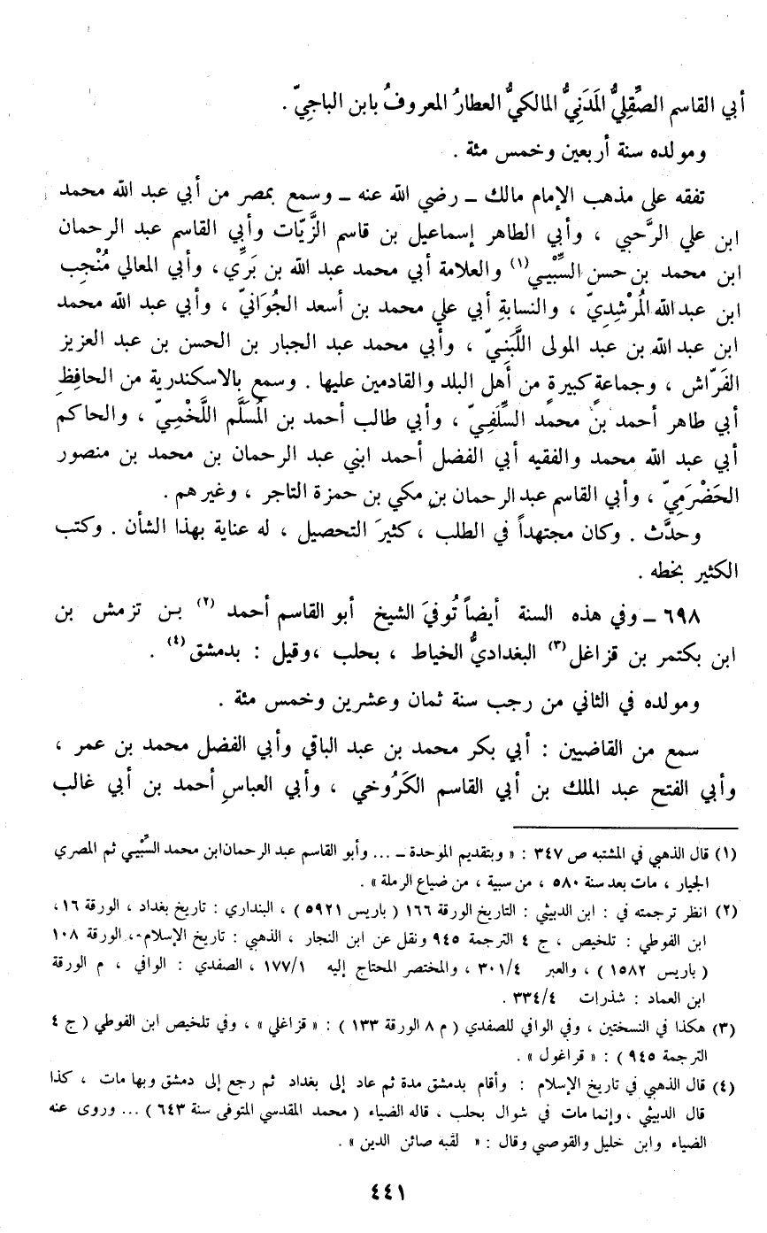 698 - وفي هذه السنة أيضا توفي الشيخ أبو القاسم أحمد بن تزمش بن ابن بكتمر بن قزاغل البغدادي الخياط، بحلب، وقيل: بدمشق.