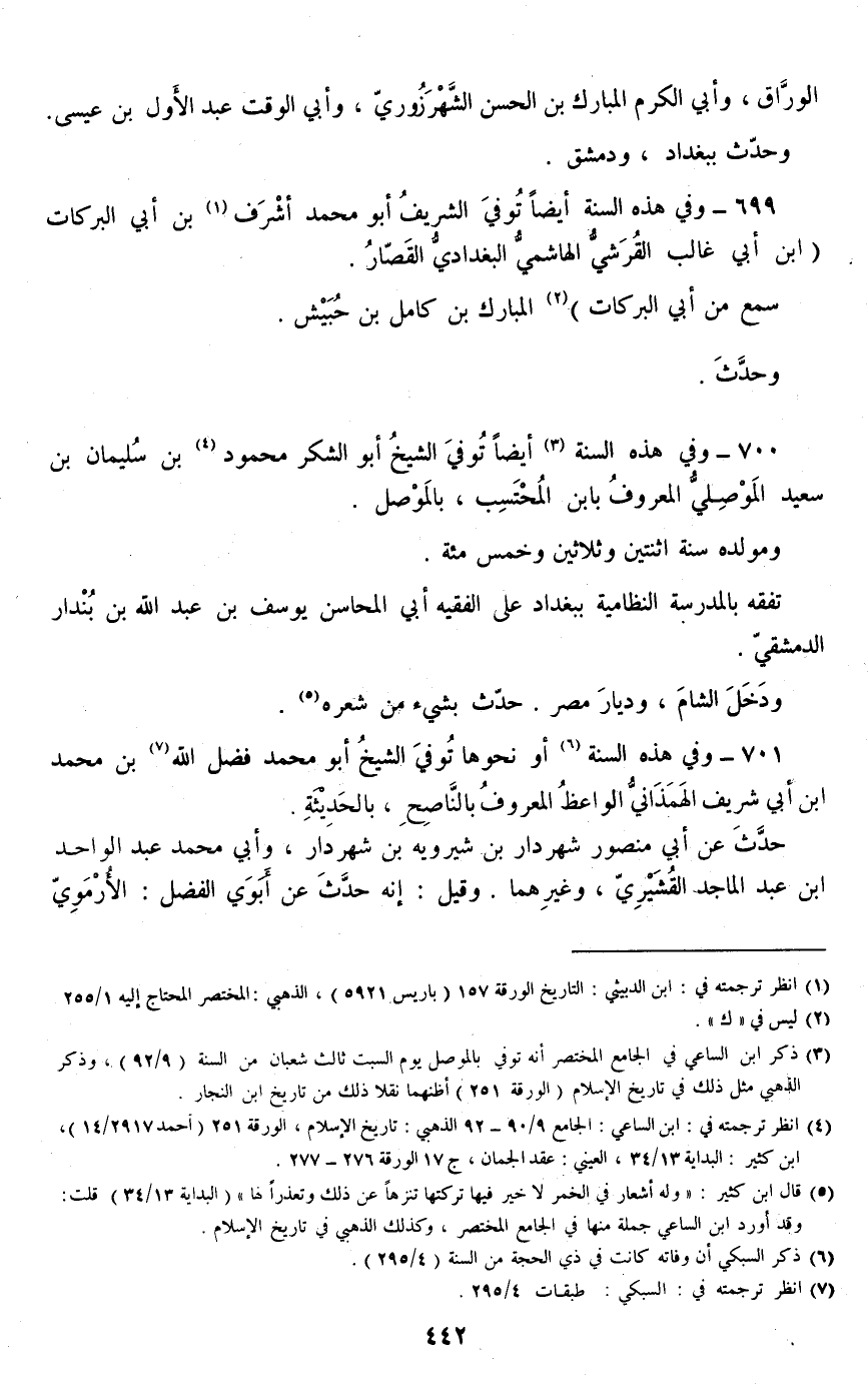 700 - وفي هذه السنة أيضا توفي الشيخ أبو الشكر محمود بن سليمان بن سعيد الموصلي المعروف بابن المحتسب، بالموصل.