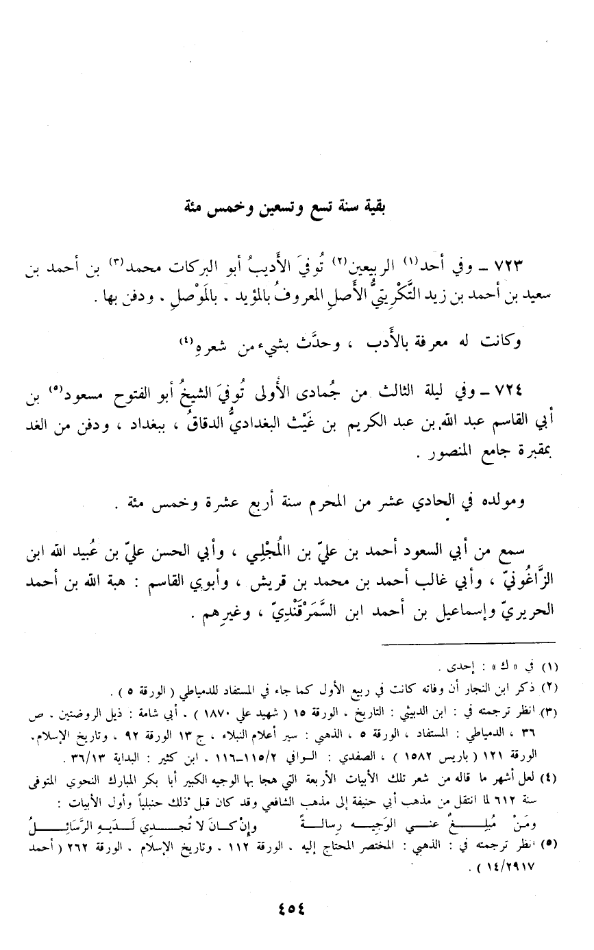724 - وفي ليلة الثالث من جمادى الأولى توفي الشيخ أبو الفتوح مسعود بن أبي القاسم عبد الله بن عبد الكريم بن غيث البغدادي الدقاق، ببغداد، ودفن من الغد بمقبرة جامع المنصور.