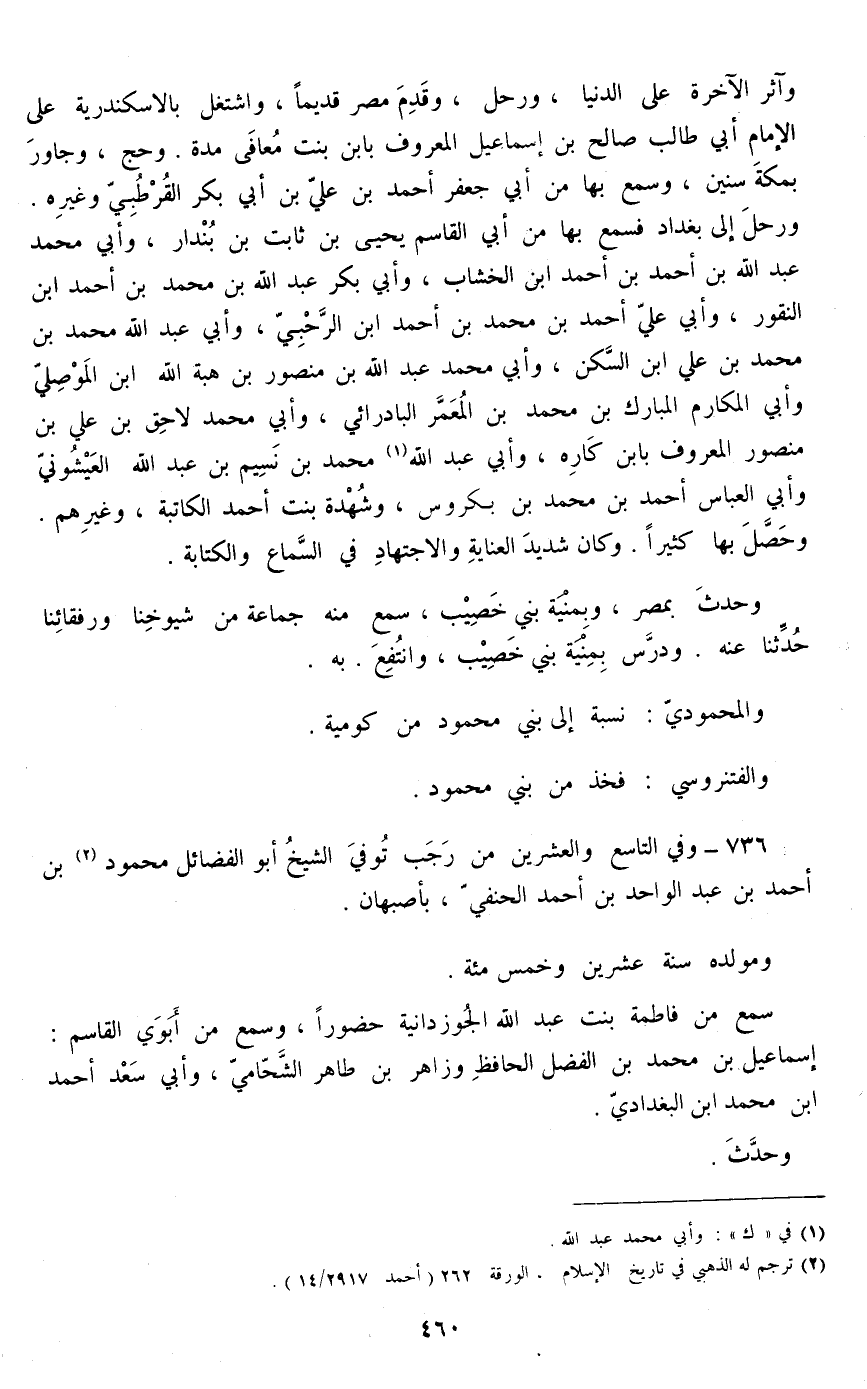 736 - وفي التاسع والعشرين من رجب توفي الشيخ أبو الفضائل محمود بن أحمد بن عبد الواحد بن أحمد الحنفي، بأصبهان.