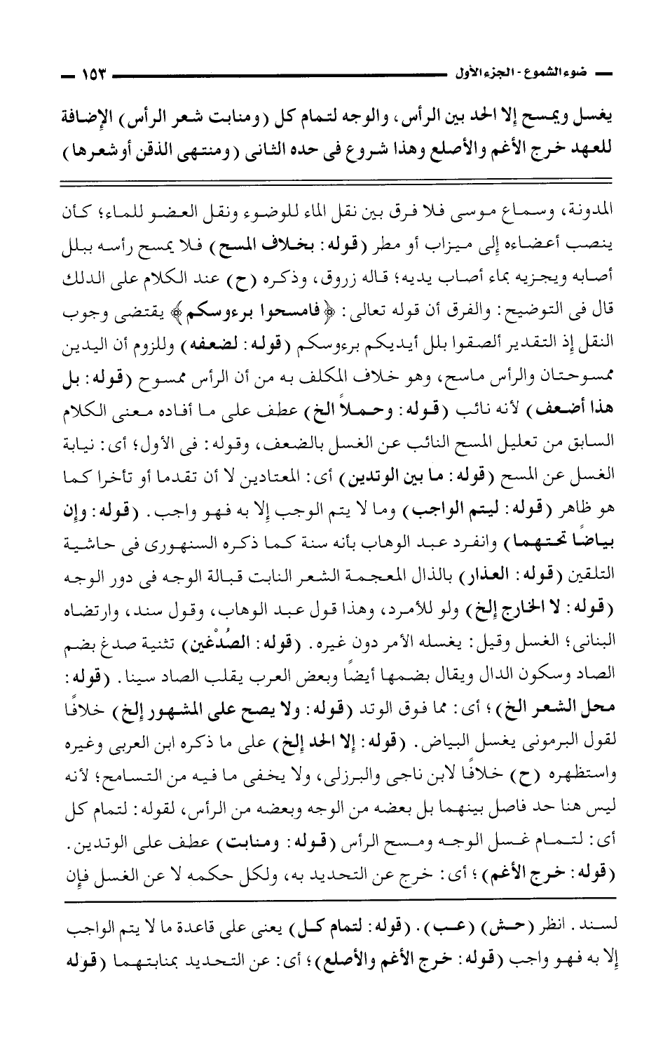 لسند. انظر (حش) (عب). (قوله: لتمام كل) يعني على قاعدة: ما لا يتم الواجب إلا به فهو واجب (قوله: خرج الأغم والأصلع)؛ أي: عن التحديد بمنابتهما