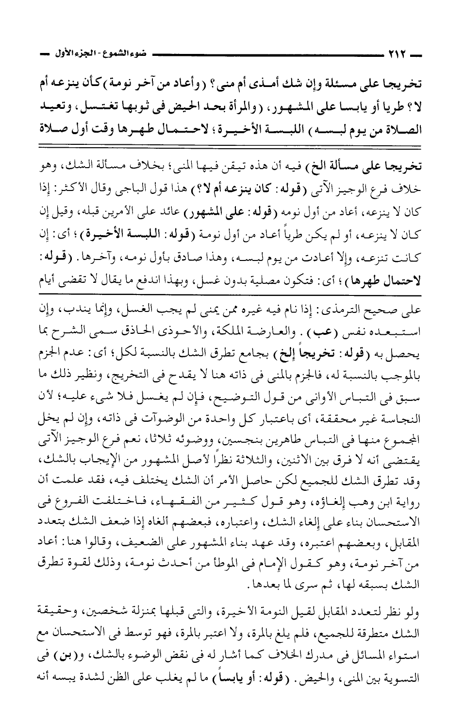 على صحيح الترمذي: إذا نام فيه غيره ممن يمنى لم يجب الغسل، وإنما يندب، وإن استبعده نفس (عب). والعارضة الملكة، والأحوذي الحاذق سمى الشرح بما يحصل به (قوله: تخريجًا إلخ) بجامع تطرق الشك بالنسبة لكل؛ أي: عدم الجزم بالموجب بالنسبة له، فالجزم بالمنى في ذاته هنا لا يقدح في التخريج، ونظير ذلك ما سبق في التباس الأواني من قول التوضيح، فإن لم يغسل فلا شيء عليه؛ لأن النجاسة غير محققة، أي باعتبار كل واحدة من الوضوآت في ذاته، وإن لم يخل المجموع منها في التباس طاهين بنجسين، ووضوئه ثلاثا، نعم فرع الوجيز الآتى يقتضي أنه لا فرق بين الاثنين، والثلاثة نظرًا لأصل المشهور من الإيجاب بالشك، وقد تطرق الشك للجميع لكن حاصل الأمر أن الشك يختلف فيه، فقد علمت أن رواية ابن وهب إلغاؤه، وهو قول كثير من الفقهاء، فاختلفت الفروع في الاستحسان بناء على إلغاء الشك، واعتباره، فبعضهم ألغاه إذا ضعف الشك بتعدد المقابل، وبعضهم اعتبره، وقد عهد بناء المشهور على الضعيف، وقالوا هنا: أعاد من آخر نومة، وهو كقول الإمام في الموطأ من أحدث نومة، وذلك لقوة تطرق الشك بسبقه لها، ثم سرى لما بعدها.