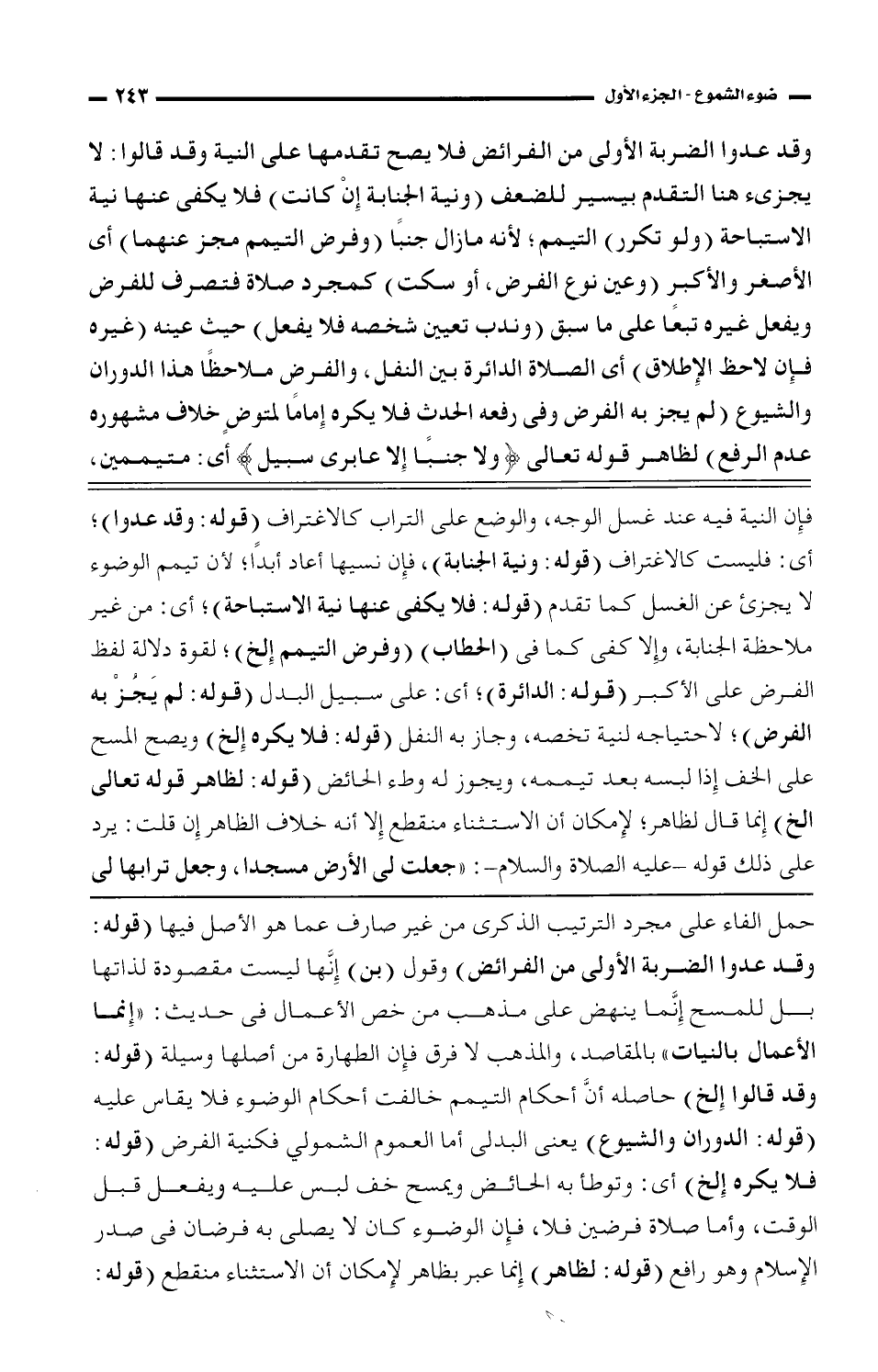 حمل الفاء على مجرد الترتيب الذكرى من غير صارف عما هو الأصل فيها (قوله: وقد عدوا الضربة الأولى من الفرائض) وقول (بن) إنها ليست مقصودة لذاتها بل للمسح إنما ينهض على مذهب من خص الأعمال في حديث: "إنما الأعمال بالنيات" بالمقاصد، والمذهب لا فرق فإن الطهارة من أصلها وسيلة (قوله: وقد قالوا الخ) حاصله أن أحكام التيمم خالفت أحكام الوضوء فلا يقاس عليه (قوله: الدوران والشيوع) يعني البدلي أما العموم الشمولي فكنية الفرض (قوله: فلا يكره الخ) أي: وتوطأ به الحائض ويمسح خف لبس عليه ويفعل قبل الوقت، وأما صلاة فرضين فلا، فإن الوضوء كان لا يصلي به فرضان في صدر الإسلام وهو رافع (قوله: لظاهر) إنما عبر بظاهر لإمكان أن الاستثناء منقطع (قوله: