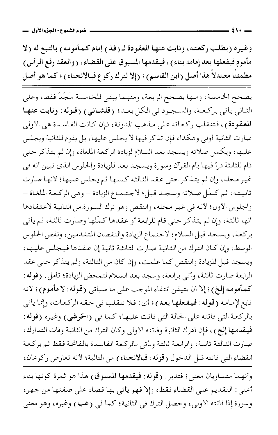 وغيره (بطلب ركعته، ونابت عنها المعقودة لـ (فذ) إمام كمأمومه) بالتبع له (لا مأموم فيفعلها بعد إمامه بناء)، فيقدمها المسبوق على القضاء، (والعقد رفع الرأس) مطمئنًا معتدلًا هذا أصل (ابن القاسم)؛ (إلا لترك ركوع فبالانحناء)؛ كما هو أصل