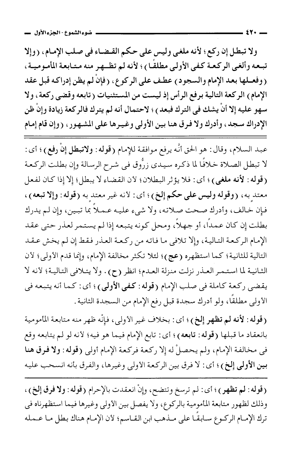 (قوله: لم تظهر)؛ أي: لم ترسخ وتتضح، وإن انعقدت بالإحرام (قوله: ولا فرق إلخ)، وذلك لظهور متابعة المأمورية بالركوع، ولا يفصل بين الأولى وغيرها فيما استظهرناه فى ترك الإمام الركوع سابقًا على مذهب ابن القاسم؛ لأن الإمام هناك بطل ما عمله