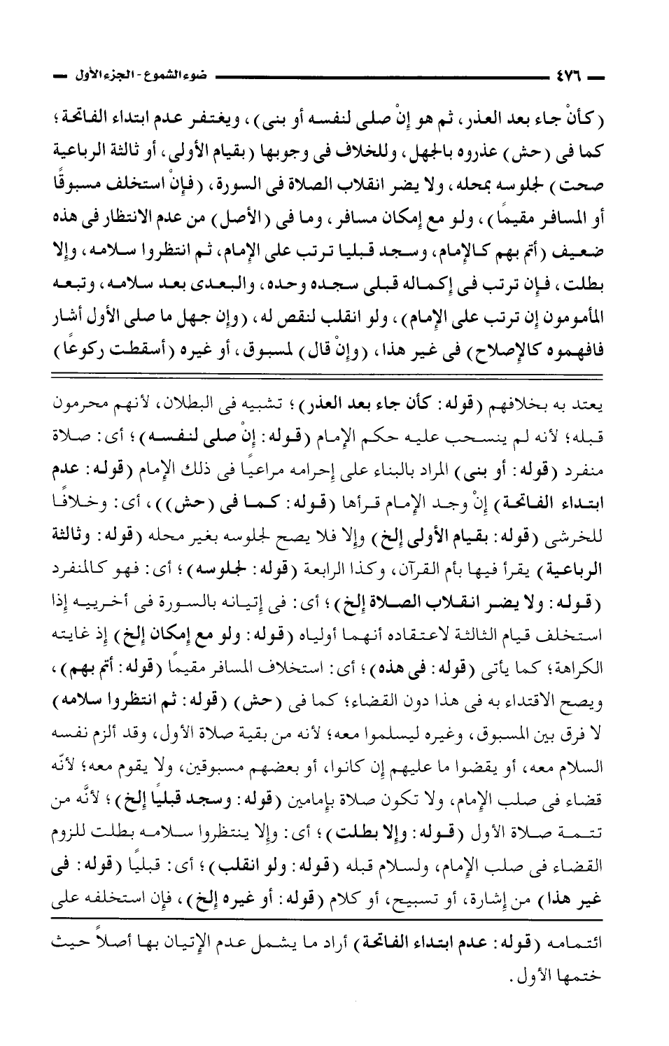 (كأن جاء بعد العذر، ثم هو إن صلى بنفسه أو بنى)، ويغتفر عدم ابتداء الفاتحة؛ كما فى (حش) عذروه بالجهل، وللخلاف فى وجوبها (بقيام الأولى، أو ثالثة الرباعية صحت) لجلوسه بمحله، ولا يضر انقلاب الصلاة فى السورة، (فإن استخلف مسبوقًا أو المسافر مقيمًا)، ولو مع إمكان مسافر، وما فى (الأصل) من عدم الانتظار فى هذه ضعيف (أتم بهم كالإمام، وسجد قبليا ترتب على الإمام، ثم انتظروا سلامه، وإلا بطلت، فإن ترتب فى إكماله قبلى سجده وحده، والبعدى بعد سلامه، وتبعه المأمون إن ترتب على الإمام)، ولو انقلب لنقص له، (وإن جهل ما صلى الأول أشار فافهموه كالإصلاح) فى غير هذا، (وإن قال) لمسبوق، أو غيره (أسقطت ركوعًا)