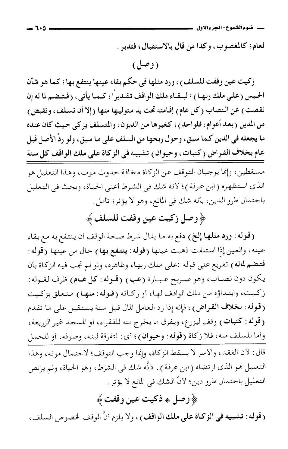 (قوله: تشبيه فى الزكاة على ملك الواقف)، ولا يلزم أنَّ الوقف لخصوص السلف،