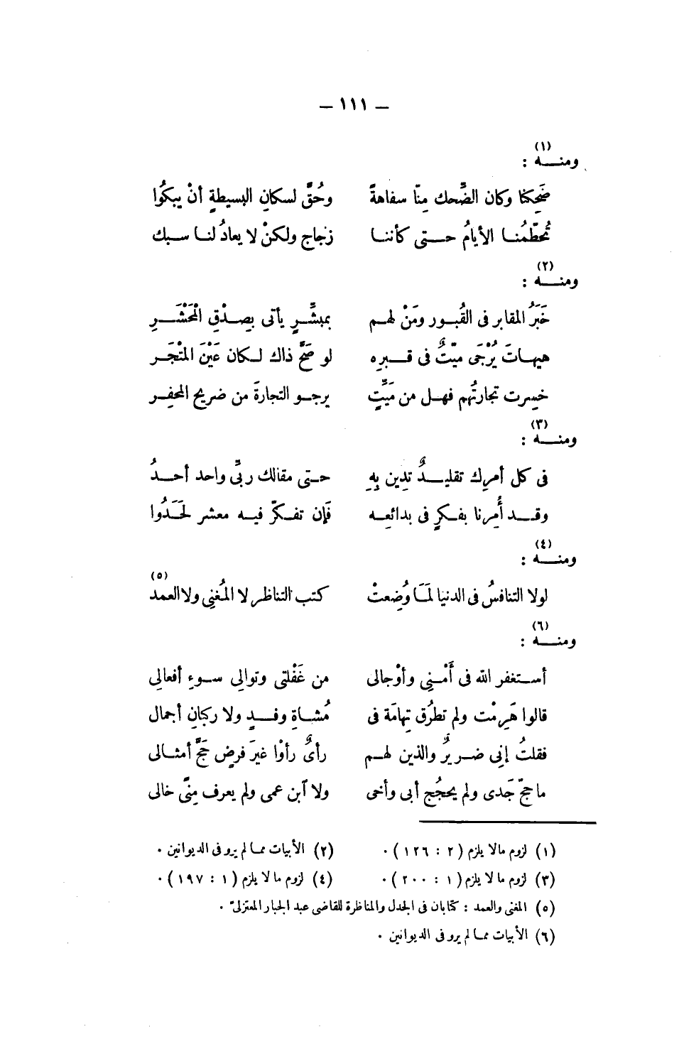 لولا التنافس فى الدنيا لما وضعت ... كتب التناظر لا المغنى ولا العمد «5»