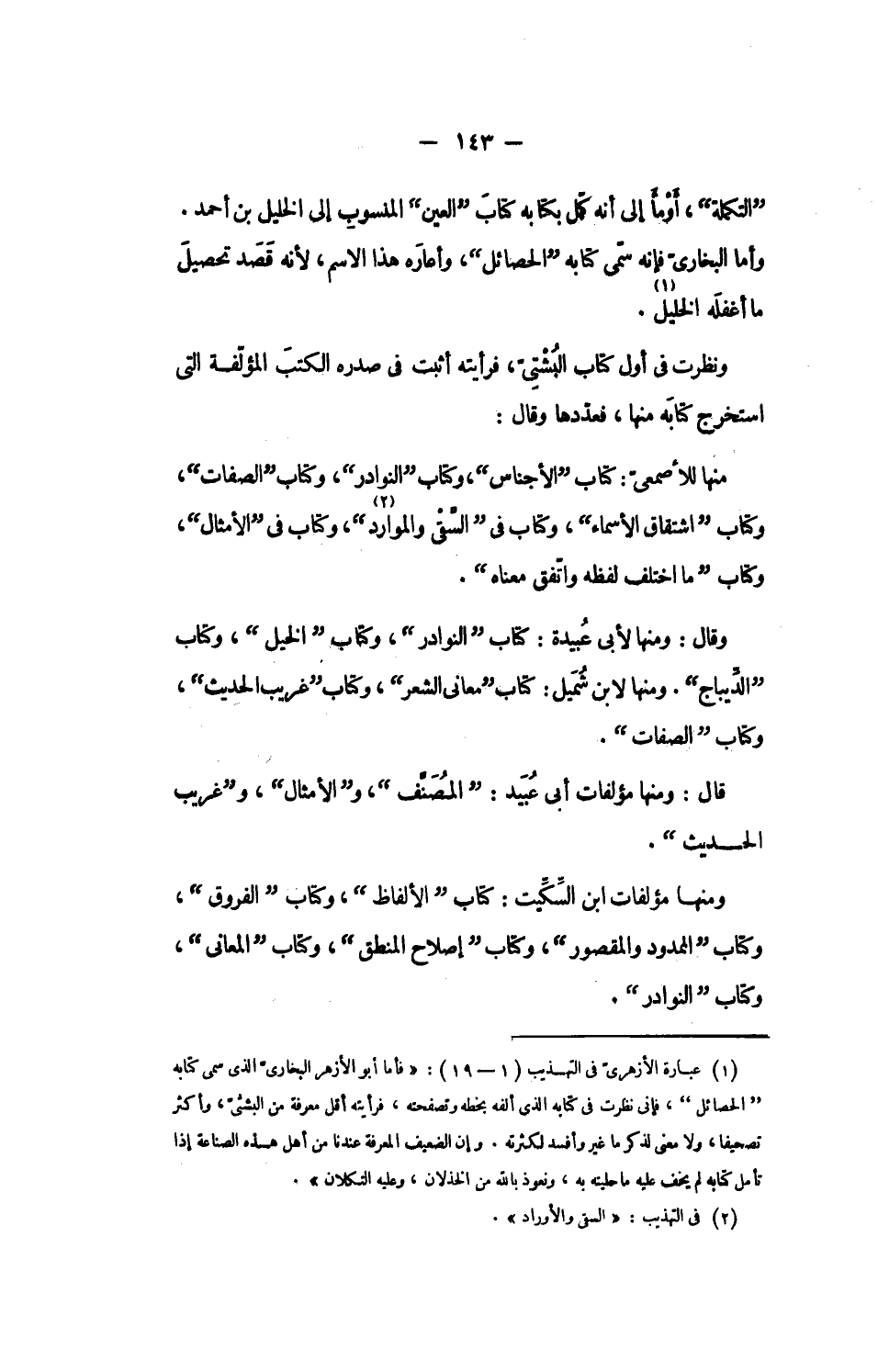 ومنها مؤلفات ابن السّكّيت: كتاب الألفاظ، وكتاب الفروق، وكتاب الممدود والمقصور، وكتاب إصلاح المنطق، وكتاب المعانى، وكتاب النوادر.