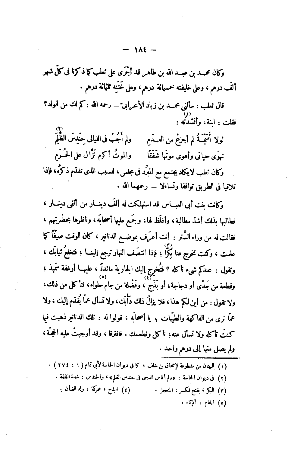 وكان محمد بن عبد الله بن طاهر قد أجرى على ثعلب كما ذكرنا فى كلّ شهر ألف درهم، وعلى خليفته خمسمائة درهم، وعلى ختنه ثلاثمائة درهم.