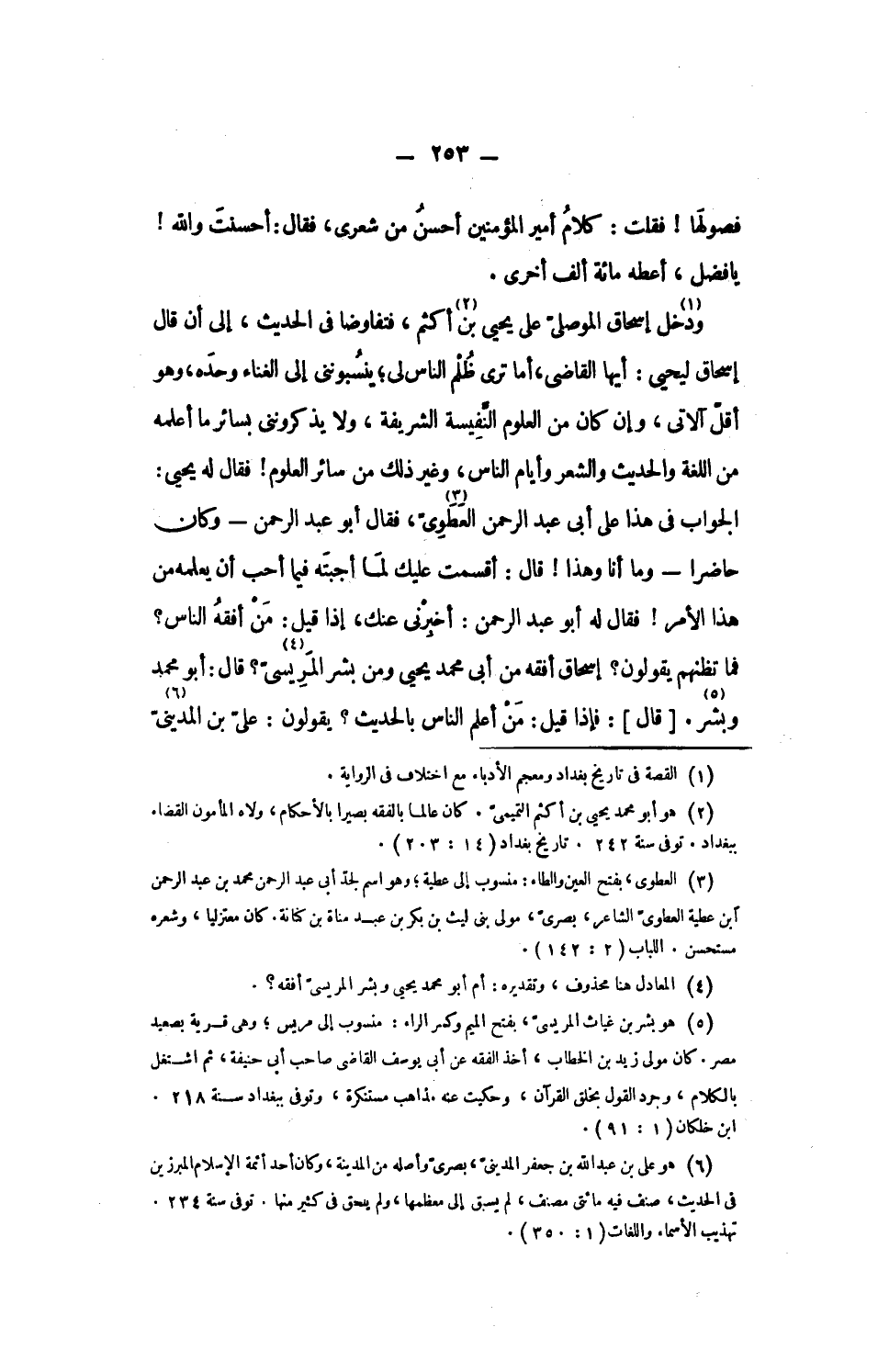فما تظنهم يقولون؟ إسحاق أفقه من أبى محمد يحيى ومن بشر المريسىّ «4»؟ قال: أبو محمد وبشر «5». [قال]: فإذا قيل: من أعلم الناس بالحديث؟ يقولون: علىّ بن المدينىّ «6»