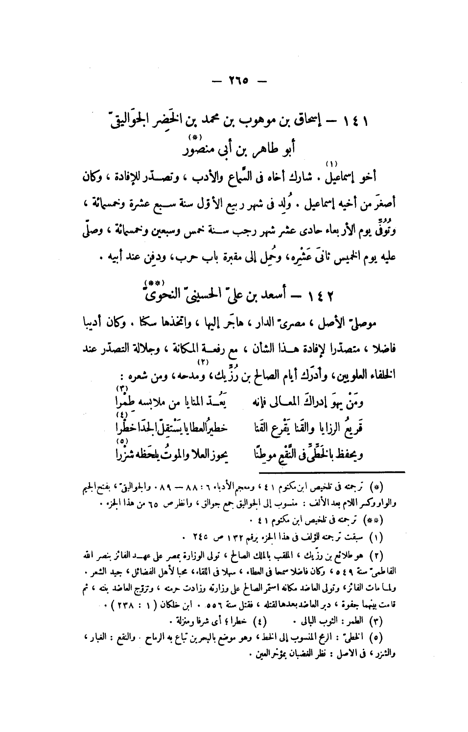 141 - إسحاق بن موهوب بن محمد بن الخضر الجواليقىّ أبو طاهر بن أبى منصور [1]