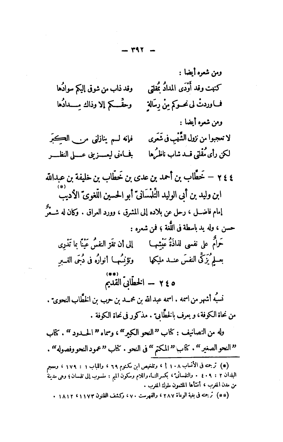 244 - خطّاب بن أحمد بن عدى بن خطّاب بن خليفة بن عبد الله ابن وليد بن أبى الوليد التّلمسانىّ أبو الحسين اللّغوىّ الأديب [1]
