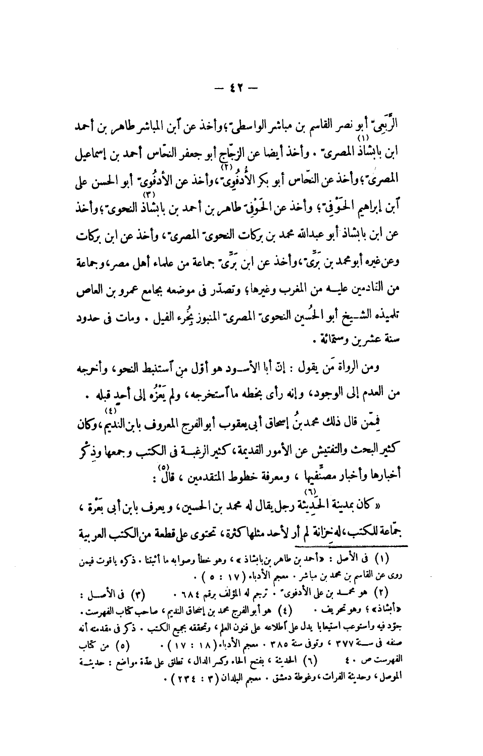 «كان بمدينة الحديثة «6» رجل يقال له محمد بن الحسين، ويعرف بابن أبى بعرة، جمّاعة للكتب، له خزانة لم أر لأحد مثلها كثرة، تحتوى على قطعة من الكتب العربية