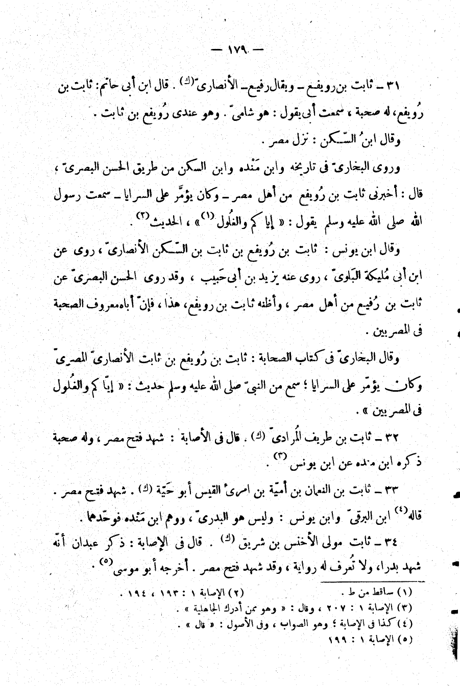 34- ثابت مولى الأخنس بن شريق "ك". قال في الإصابة: ذكر عبدان أنه شهد بدرا، ولا تُعرف له رواية، وقد شهد فتح مصر. أخرجه أبو موسى (¬5) .