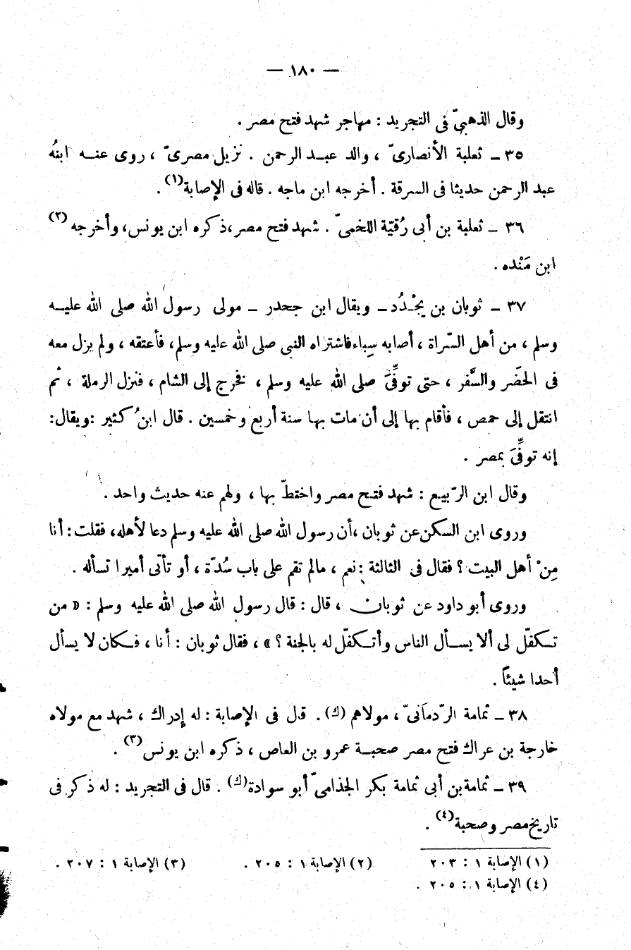 38- ثمامة الردماني، مولاهم "ك". قال في الإصابة: له إدراك، شهد مع مولاه خارجة بن عراك فتح مصر صحبة عمرو بن العاص، ذكره ابن يونس (¬3) .