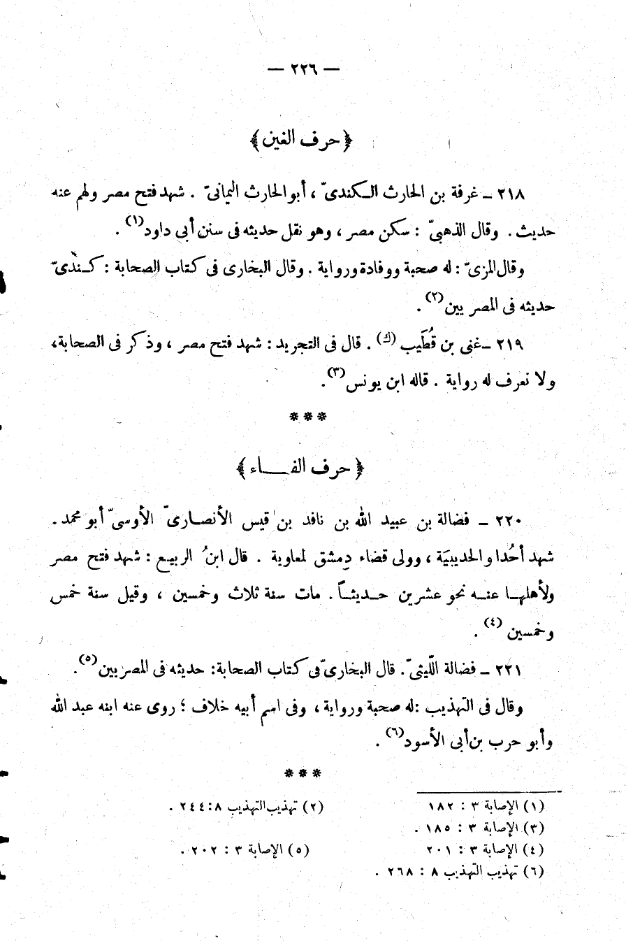 221- فضالة الليثي. قال البخاري في كتاب الصحابة: حديثه في المصريين (¬5) .