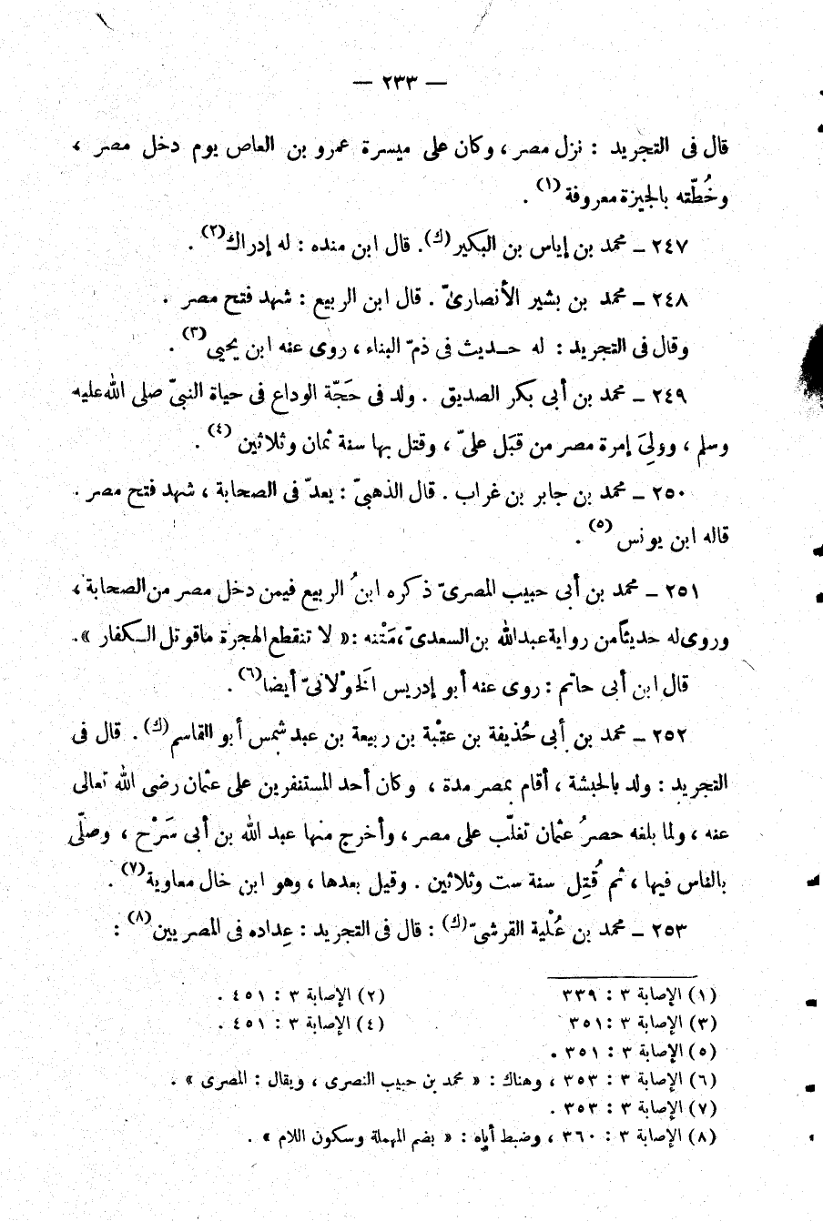 (¬6) الإصابة 3: 353، وهناك: "محمد بن حبيب النصري، ويقال: المصري".