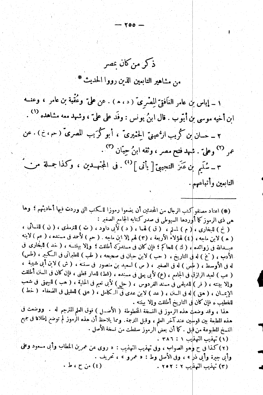 (¬1) اعتاد مصنفو كتب الرجال من المحدثين أن يضعوا رموزًا للكتب التي وردت فيها أحاديثهم؛ وها هي ذي الرموز كما أوردها السيوطي في صدر كتابه الجامع الصغير.