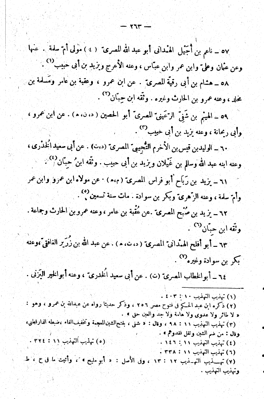 58- هشام بن أبي رقية المصري. عن ابن عمرو، وعقبة بن عامر ومسلمة بن مخلد، وعنه عمرو بن الحارث وغيره. وثقه ابن حبان (¬2) .