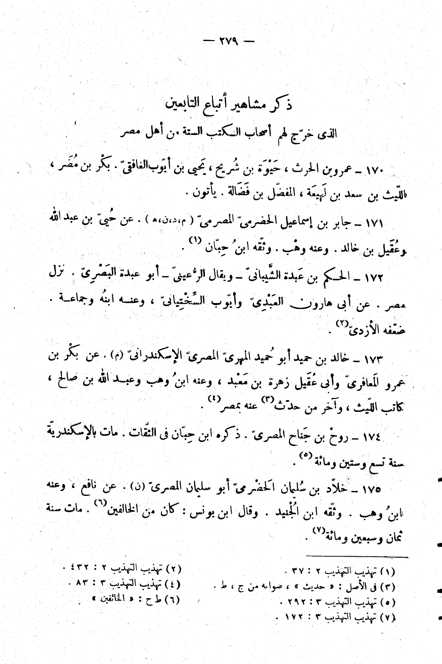 ذكر مشاهير أتباع التابعين الذين خَرَّج لهم أصحاب الكتب الستة من أهل مصر