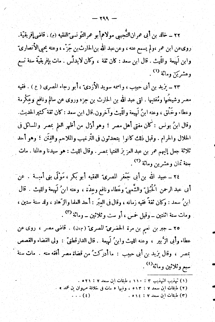 24- عبيد الله بن أبي جعفر المصري الفقيه أبو بكر، مولى بني أمية. عن أبي عبد الرحمن الحبلي والشعبي وعطاء ونافع وعدة، وعنه ابن لهيعة والليث. قال ابن سعد: وكان ثقة فقيه زمانه، وقال في العبر: أحد العلماء والزهاد، ولد سنة ستين، ومات سنة اثنتين -وقيل خمس، أو ست وثلاثين- ومائة (¬3) .