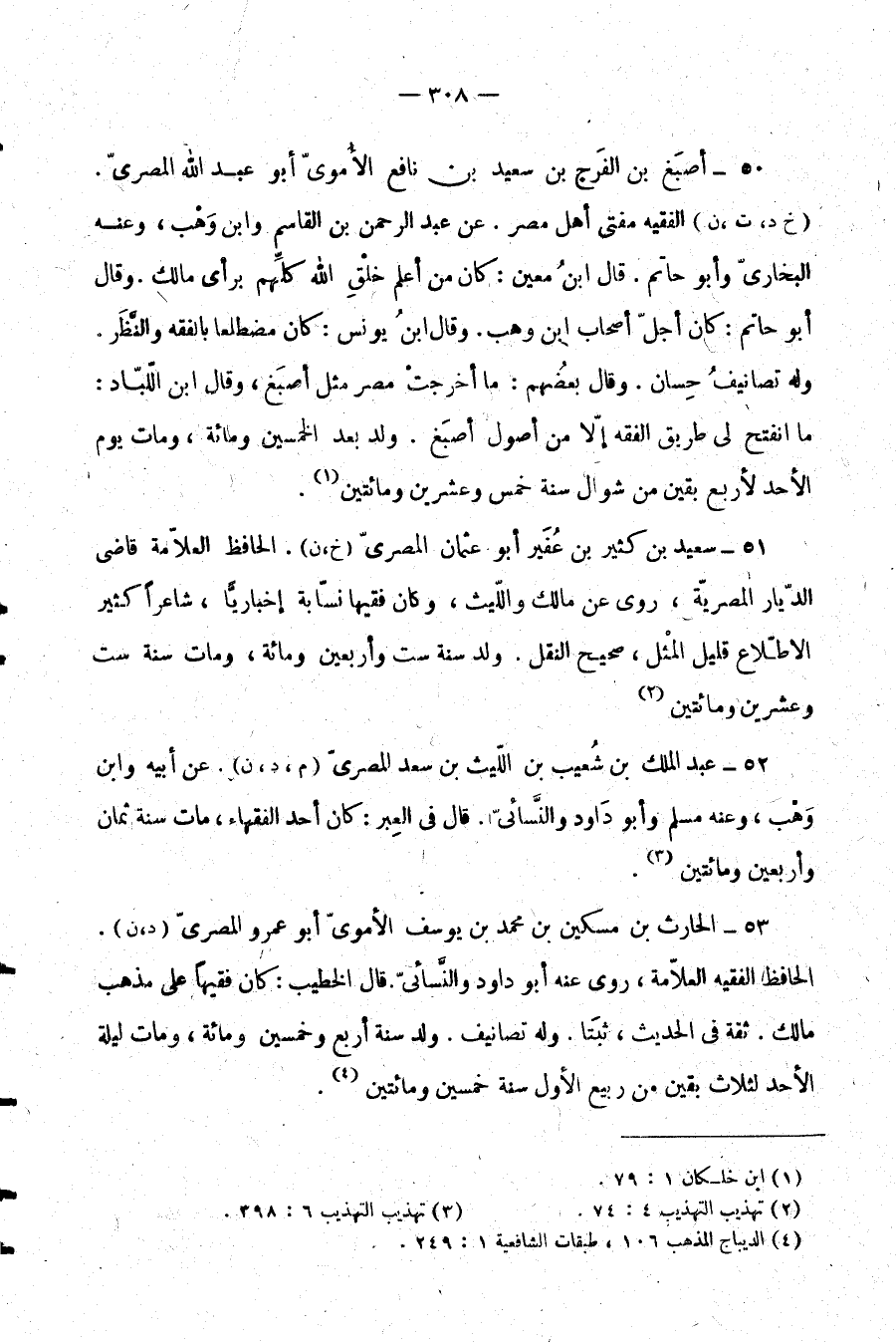 51- سعيد بن كثير بن عفير أبو عثمان المصري "خ، ن". الحافظ العلامة قاضي الديار المصرية، روى عن مالك والليث، وكان فقيهًا نسابة إخباريًّا، شاعرًا
