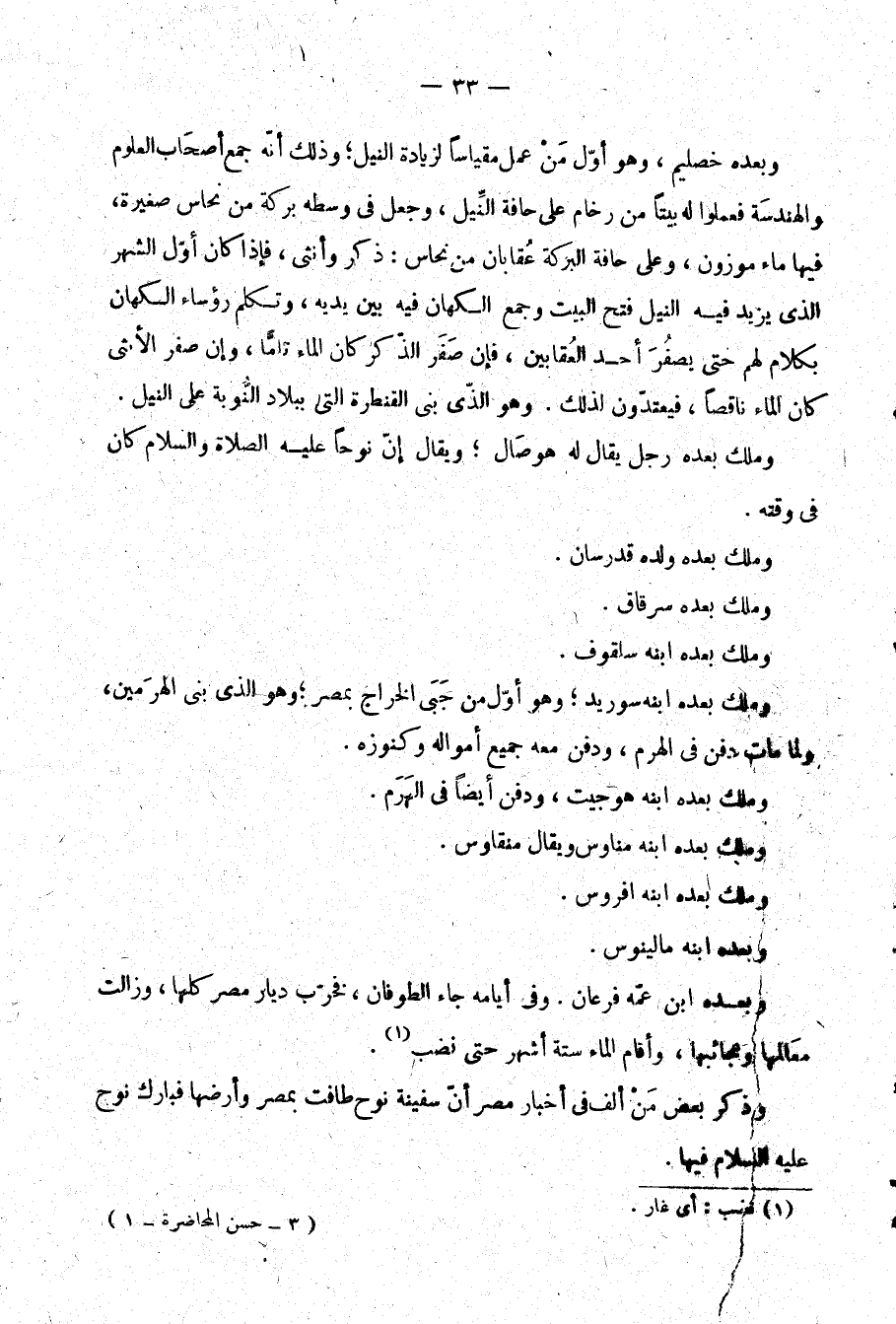 وبعده خصليم، وهو أول من عمل مقياسا لزيادة النيل؛ وذلك أنه جمع أصحاب العلوم والهندسة فعملوا له بيتا من رخام على حافة النيل، وجعل في وسطه بركة من نحاس صغيرة، فيها ماء موزون، وعلى حافة البركة عقابان من