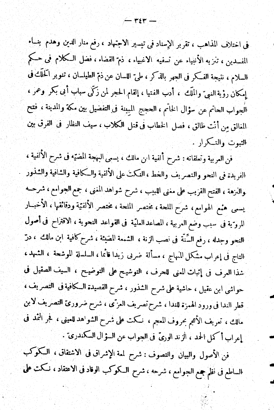 في اختلاف المذاهب، تقرير الإسناد في تيسير الاجتهاد، رفع منار الدين وهدم بناء المفسدين، تنزيه الأنبياء عن تسفيه الأغبياء، ذم القضاء، فضل الكلام في حكم السلام، نتيجة الفكر في الجهر بالذكر، طي اللسان عن ذم الطيلسان، تنوير الحلك في إمكان رؤية النبي والملك، أدب الفتيا، إلقام الحجر لمن زكى سباب أبي بكر وعمر، الجواب الحاتم عن السؤال الخاتم، الحجج المبينة في التفضيل بين
