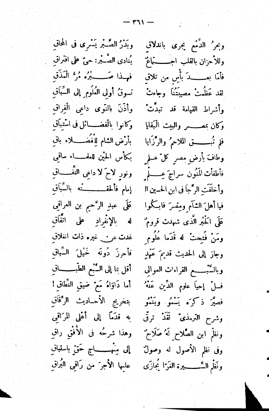 وطاف بأرض مصر كل علمٍ ... بكأس الحين للعلماء ساقي