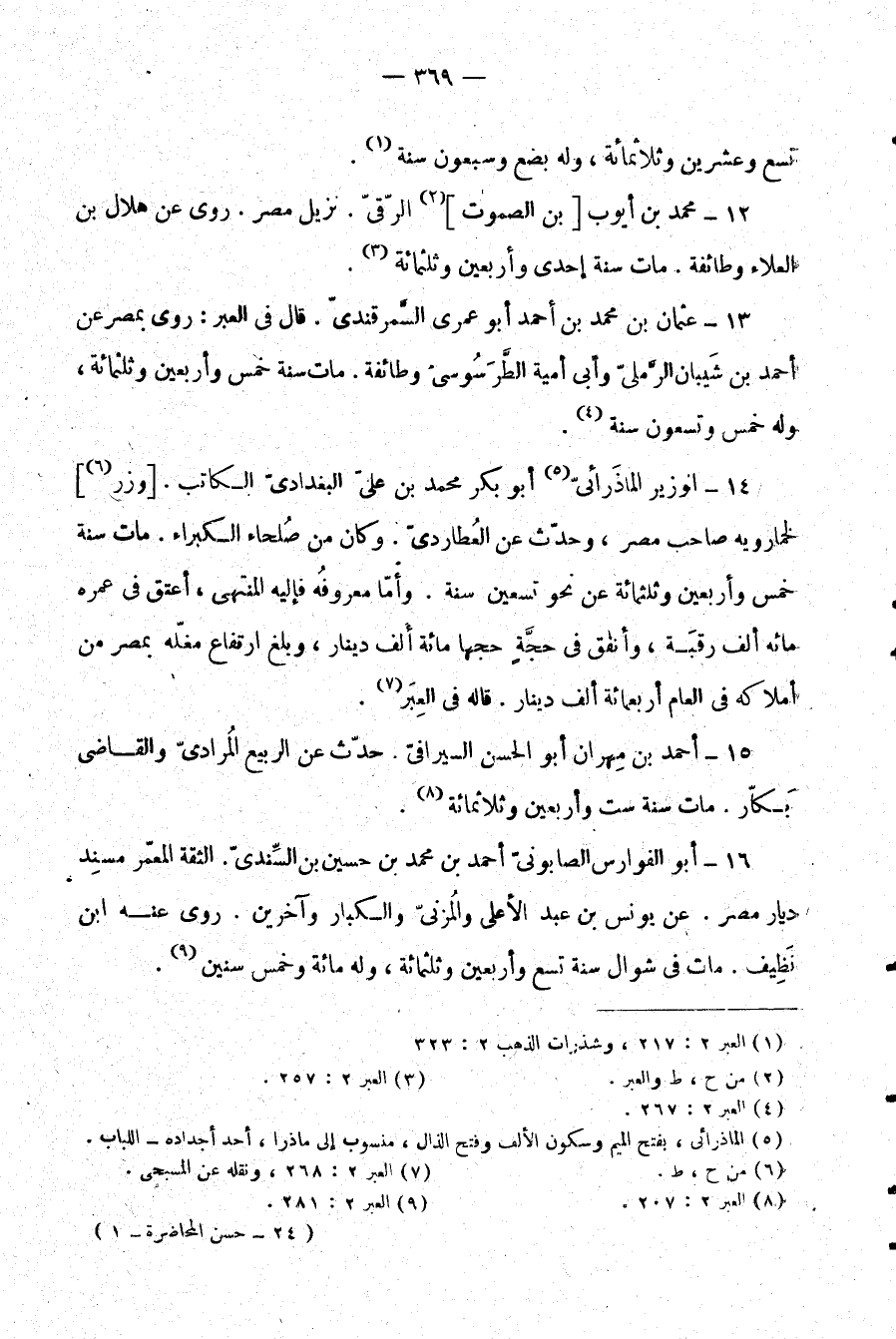13- عثمان بن محمد بن أحمد أبو عمري السمرقندي. قال في العبر: روى بمصر عن أحمد بن شيبان الرملي وأبي أمية الطرسوسي وطائفة. مات سنة خمس وأربعين وثلاثمائة، وله خمس وتسعون سنة (¬4) .