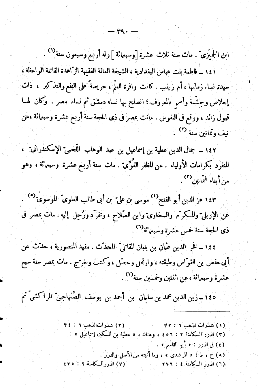 142- جمال الدين عطية بن إسماعيل بن عبد الوهاب اللخمي الإسكندراني، المنفرد بكرامات الأولياء. عن المظفر الفُوِّي. مات سنة أربع عشرة وسبعمائة، وهو من أبناء الثمانين (¬3) .