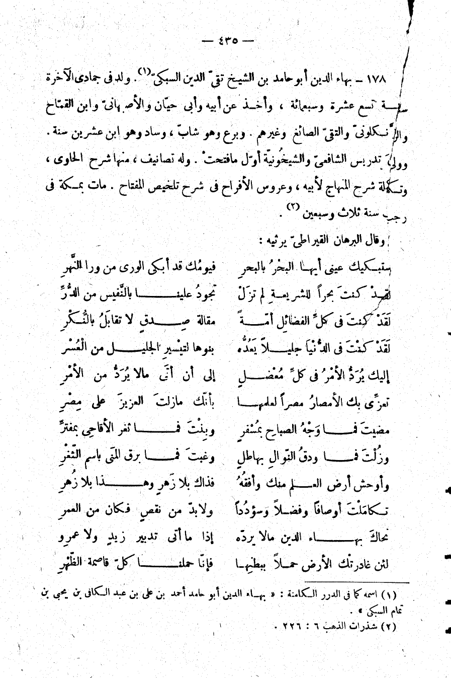 (¬1) اسمه كما في الدرر الكامنة: "بهاء الدين أبو حامد أحمد بن علي بن عبد الكافي بن يحيى بن تمام السبكي".