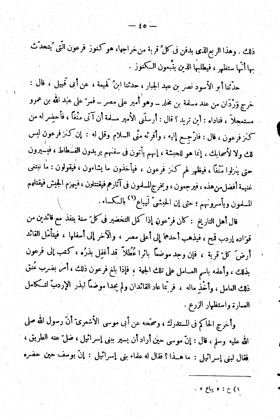 ذلك. وهذا الربع الذي يدفن في كل قرية من خراجها، هو كنوز فرعون التي يُتحدث بها أنها ستظهر، فيطلبها الذين يتبعون الكنوز.