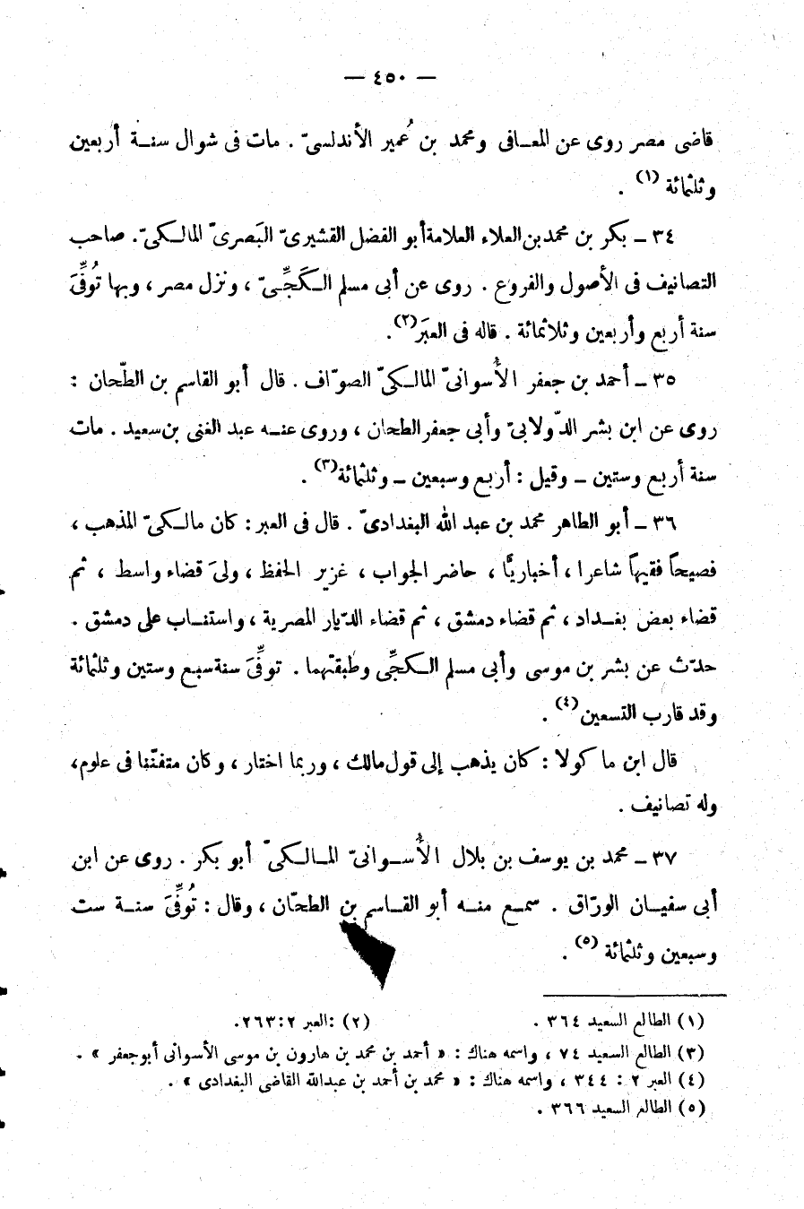 34- بكر بن محمد بن العلاء العلامة أبو الفضل القشيري البصري المالكي. صاحب التصانيف في الأصول والفروع. روى عن أبي مسلم الكجي، ونزل مصر، وبها توفي سنة أربع وثلاثمائة. قاله في العبر (¬2) .
