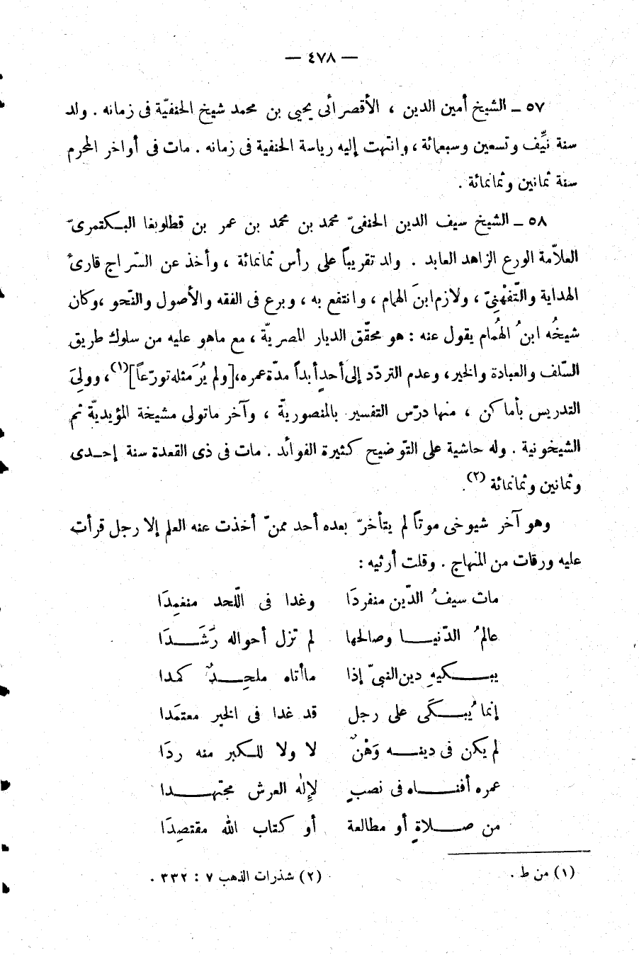 57- الشيخ أمين الدين، الأقصرائي يحيى بن محمد شيخ الحنفية في زمانه. ولد سنة نيف وتسعين وسبعمائة، وانتهت إليه رياسة الحنفية في زمانه. مات في أواخر المحرم سنة ثمانين وثمانمائة.