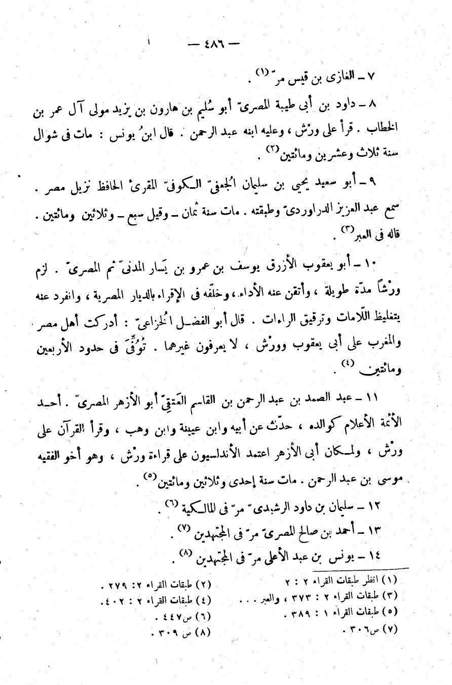 8- داود بن أبي طيبة المصري أبو سليم بن هارون بن يزيد مولى آل عمر بن الخطاب. قرأ على ورش، وعليه ابنه عبد الرحمن. قال ابن يونس: مات في شوال سنة ثلاث وعشرين ومائتين (¬2) .