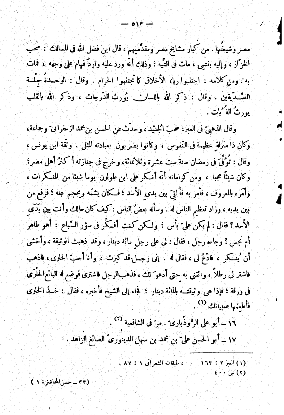 (¬1) العبر 2: 163، طبقات الشعراني 1: 87.