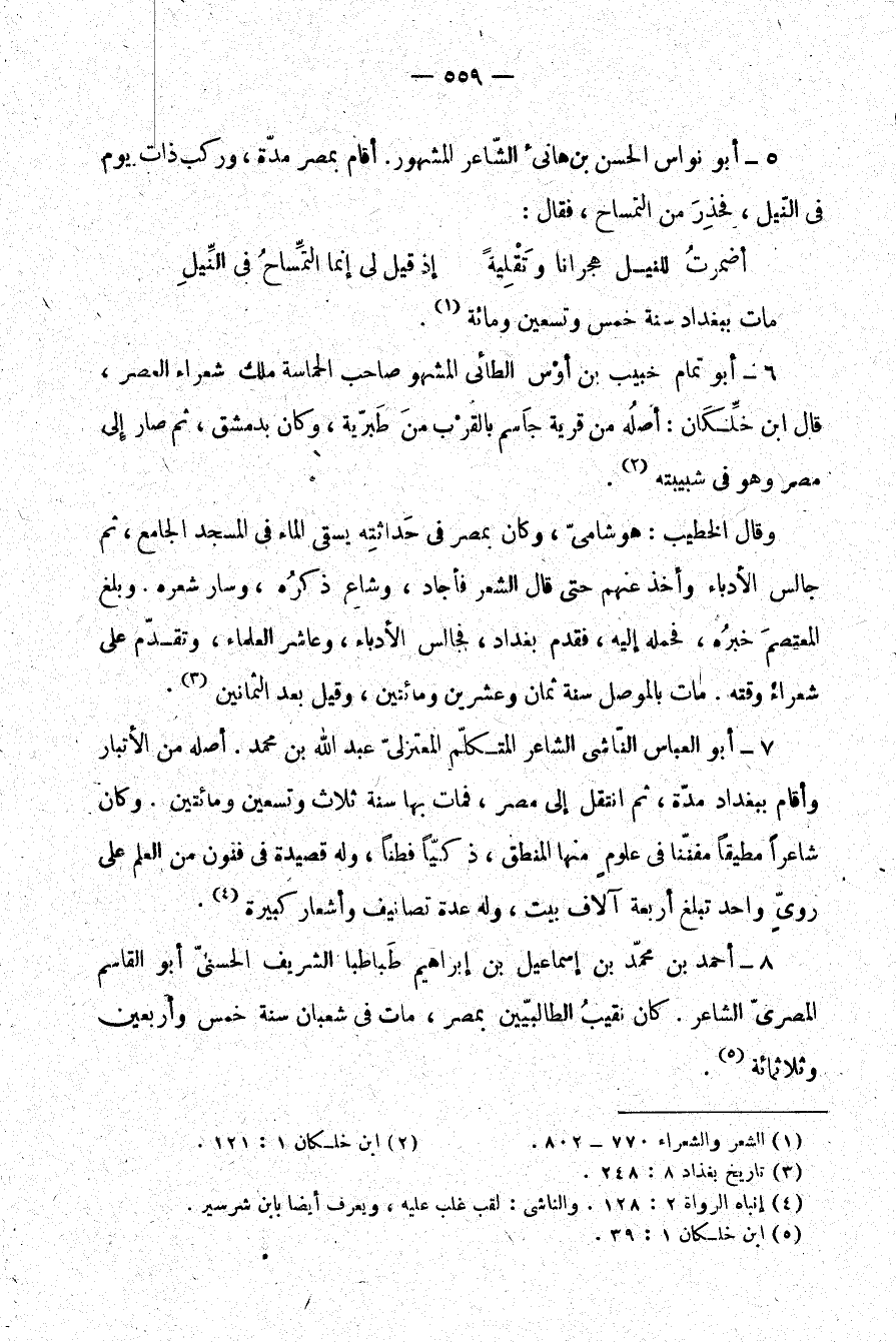5- أبو نواس الحسن بن هانئ الشاعر المشهور. أقام بمصر مدة، وركب ذات يوم في النيل، فحذر من التمساح، فقال: