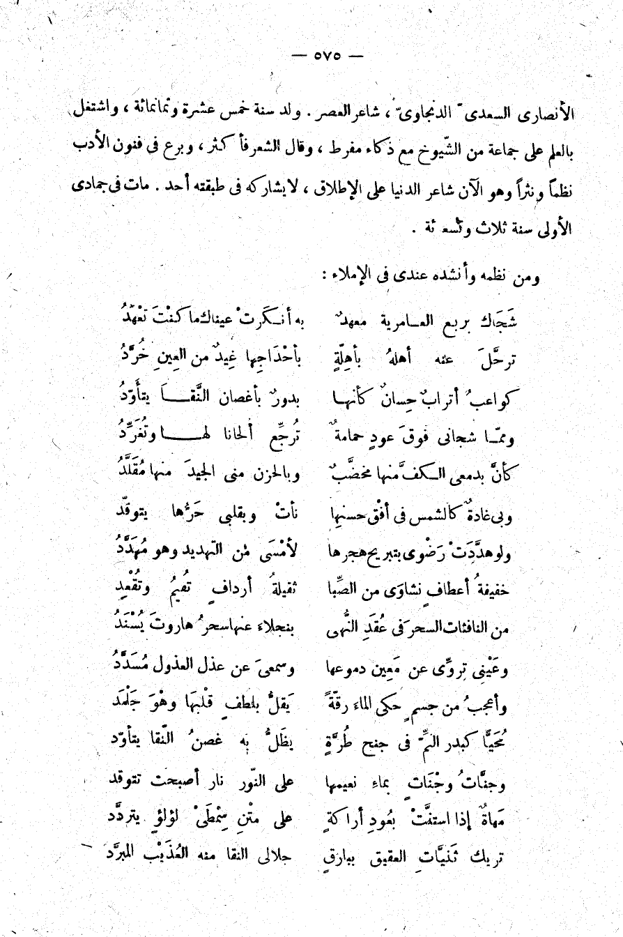 شاعر العصر. ولد سنة خمس عشرة وثمانمائة، واشتغل بالعلم على جماعة من الشيوخ مع ذكاء مفرط، وقال الشعر فأكثر، وبرع في فنون الأدب نظمًا ونثرًا وهو الآن شاعر الدنيا على الإطلاق، لا يشاركه في طبقته أحد. مات في جمادى الأولى سنة ثلاث وتسعمائة.