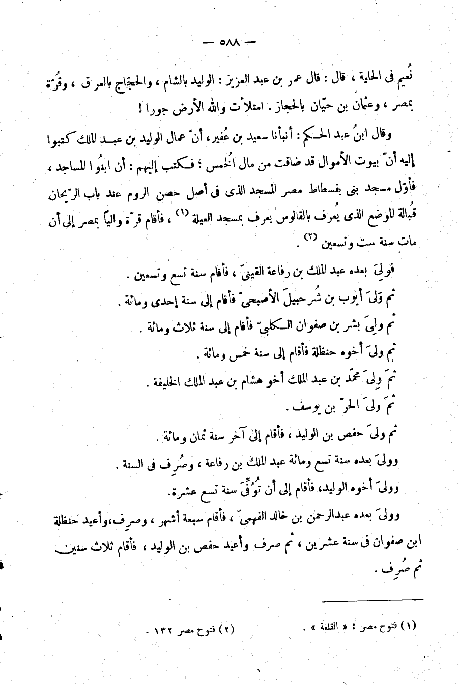 نعيم في الحلية، قال: قال عمر بن عبد العزيز: الوليد بالشام، والحجاج بالعراق، وقرة بمصر، وعثمان بن حيان بالحجاز. امتلأت والله الأرض جورا!