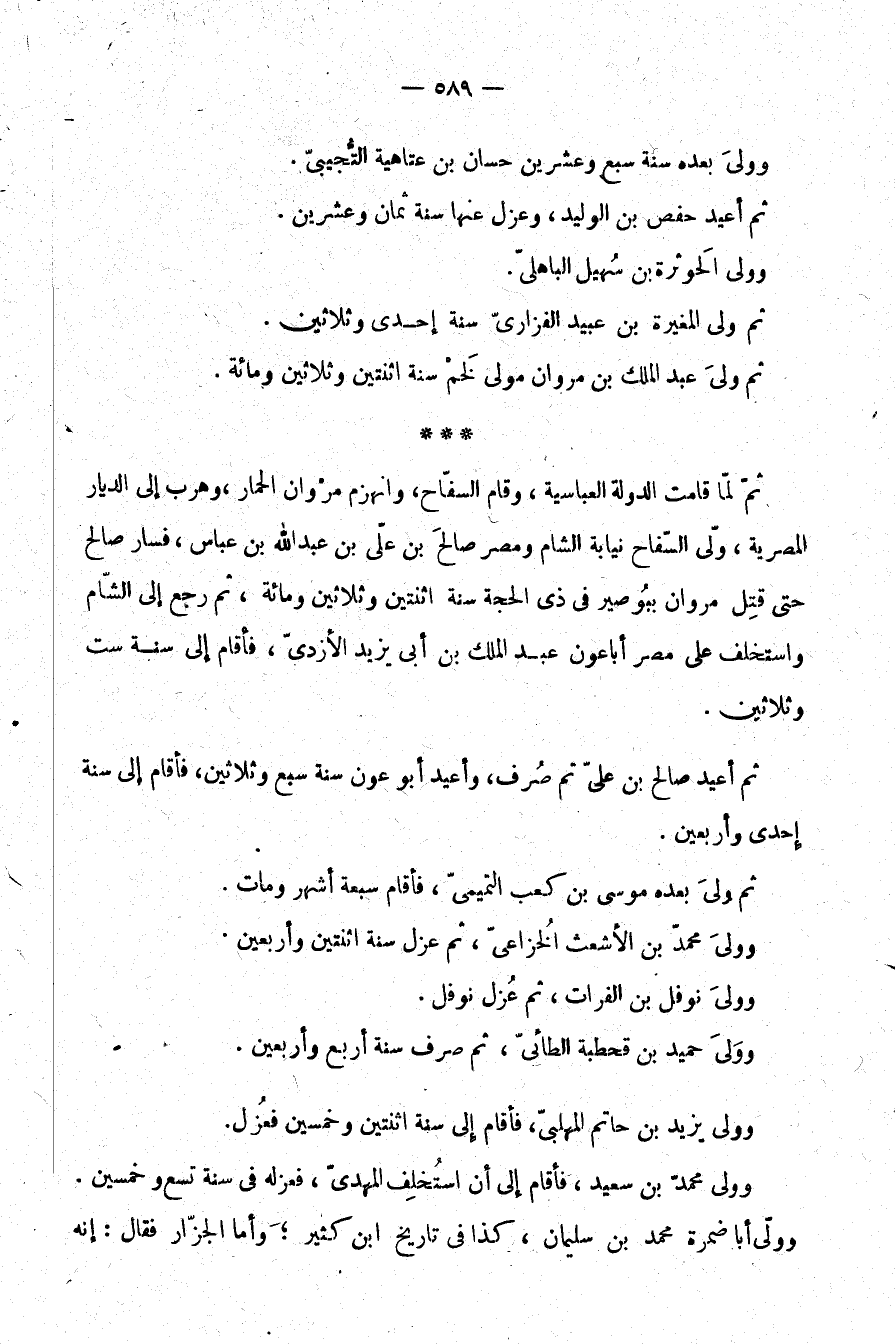 ثم لما قامت الدولة العباسية، وقام السفاح، وانهزم مروان الحمار، وهرب إلى الديار المصرية، ولّى السفاح نيابة الشام ومصر صالح بن علي بن عبد الله بن عباس، فسار صالح حتى قتل مروان ببوصير في ذي الحجة سنة اثنتين وثلاثين ومائة، ثم رجع إلى الشام واستخلف على مصر أبا عون عبد الملك بن أبي يزيد الأزدي، فأقام إلى سنة ست وثلاثين.