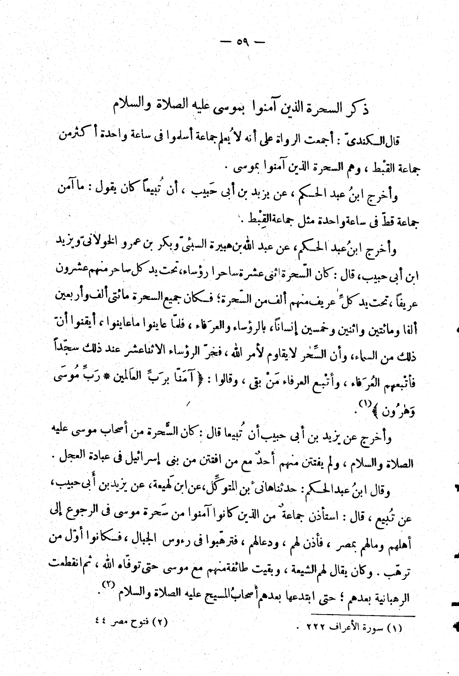 قال الكندي: أجمعت الرواة على أنه لا يعلم جماعة أسلموا في ساعة واحدة أكثر من جماعة القبط، وهم السحرة الذين آمنوا بموسى.