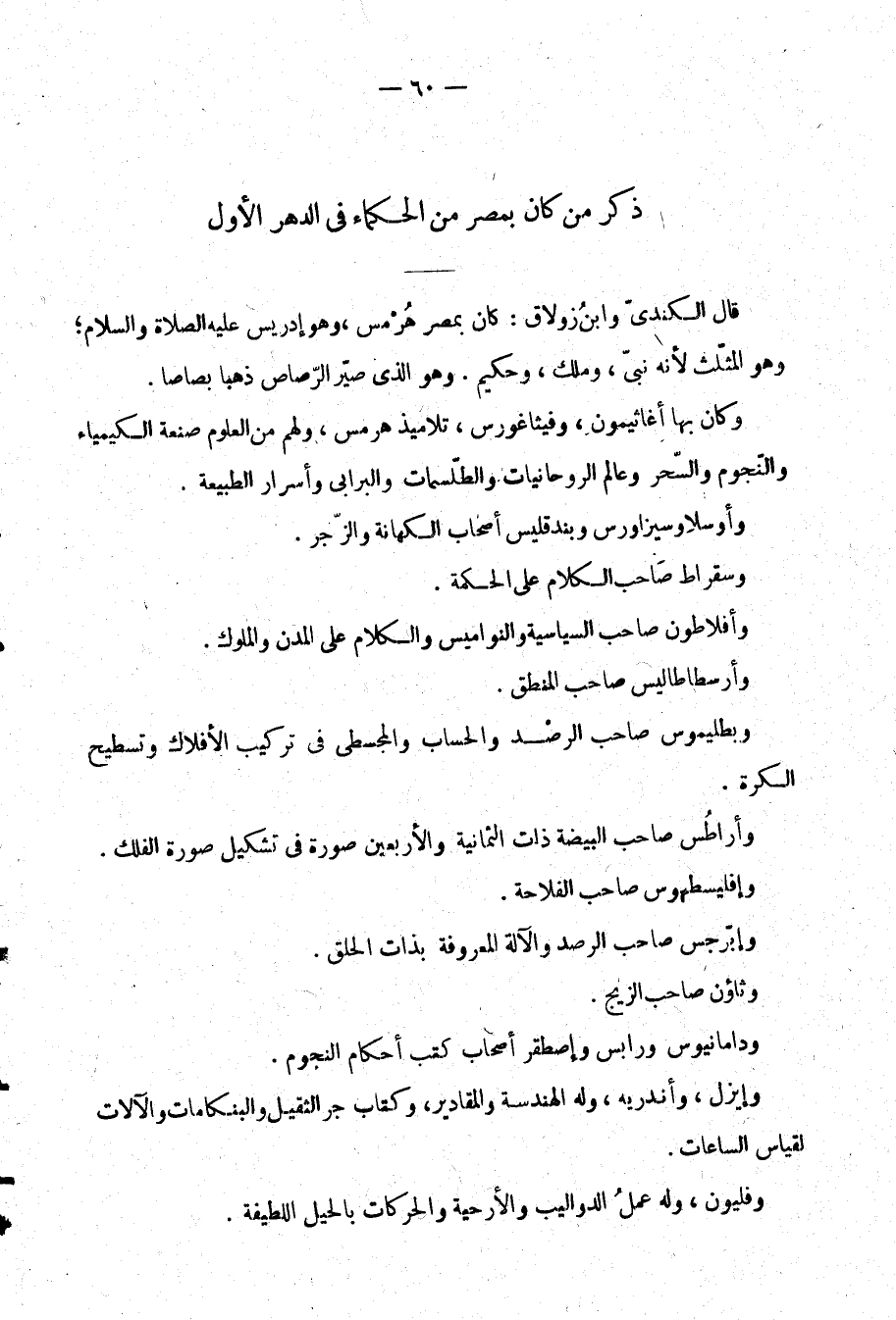ذكر من كان بمصر من الحكماء في الدهر الأول: