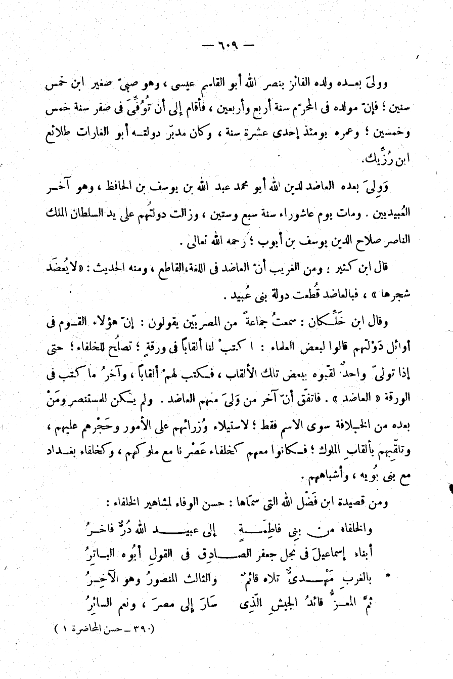 ومن قصيدة ابن فضل الله التي سماها: حسن الوفاء لمشاهير الخلفاء: