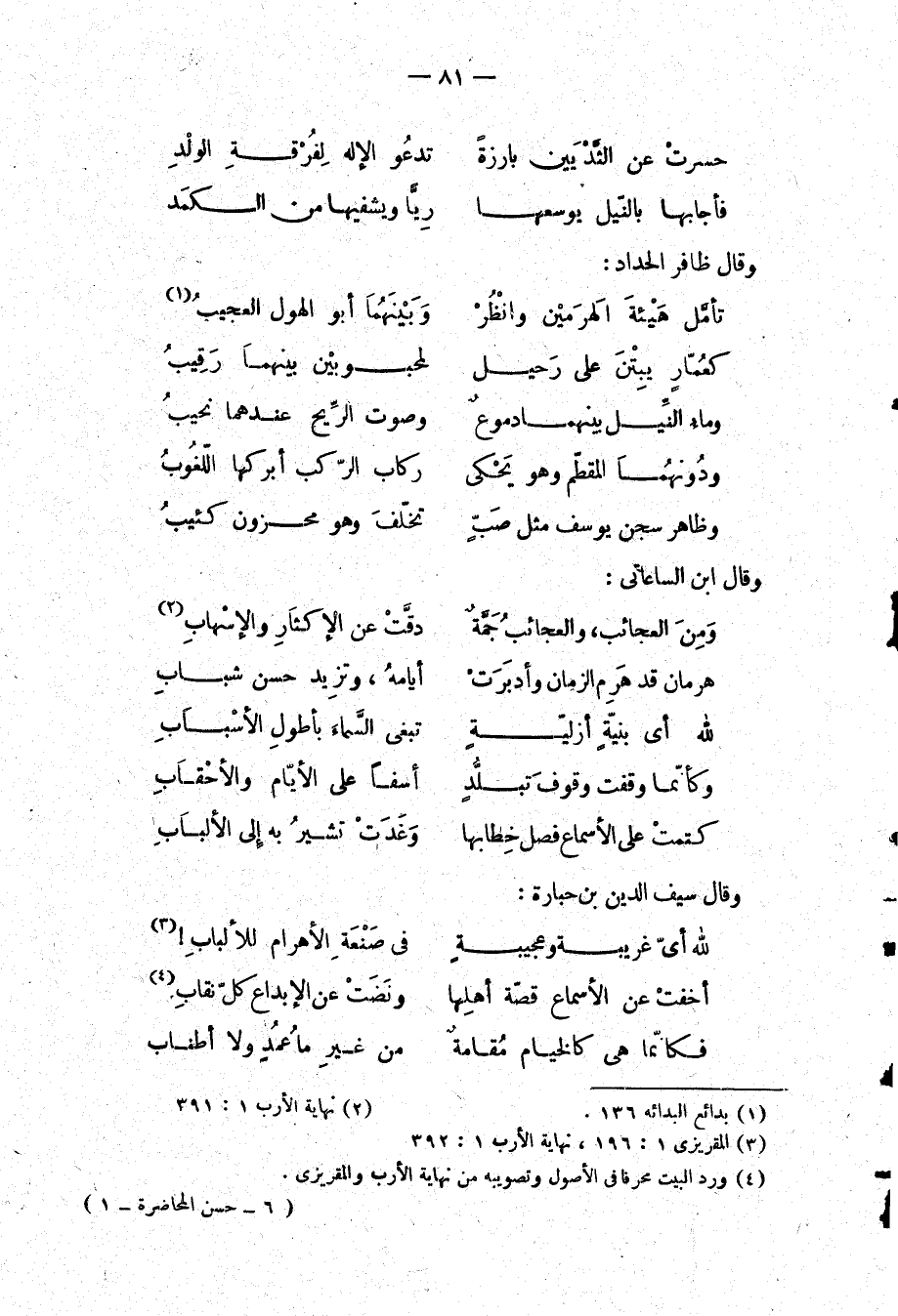 (¬4) ورد البيت محرفًا في الأصول وتصويبه من نهاية الأرب والمقريزي.