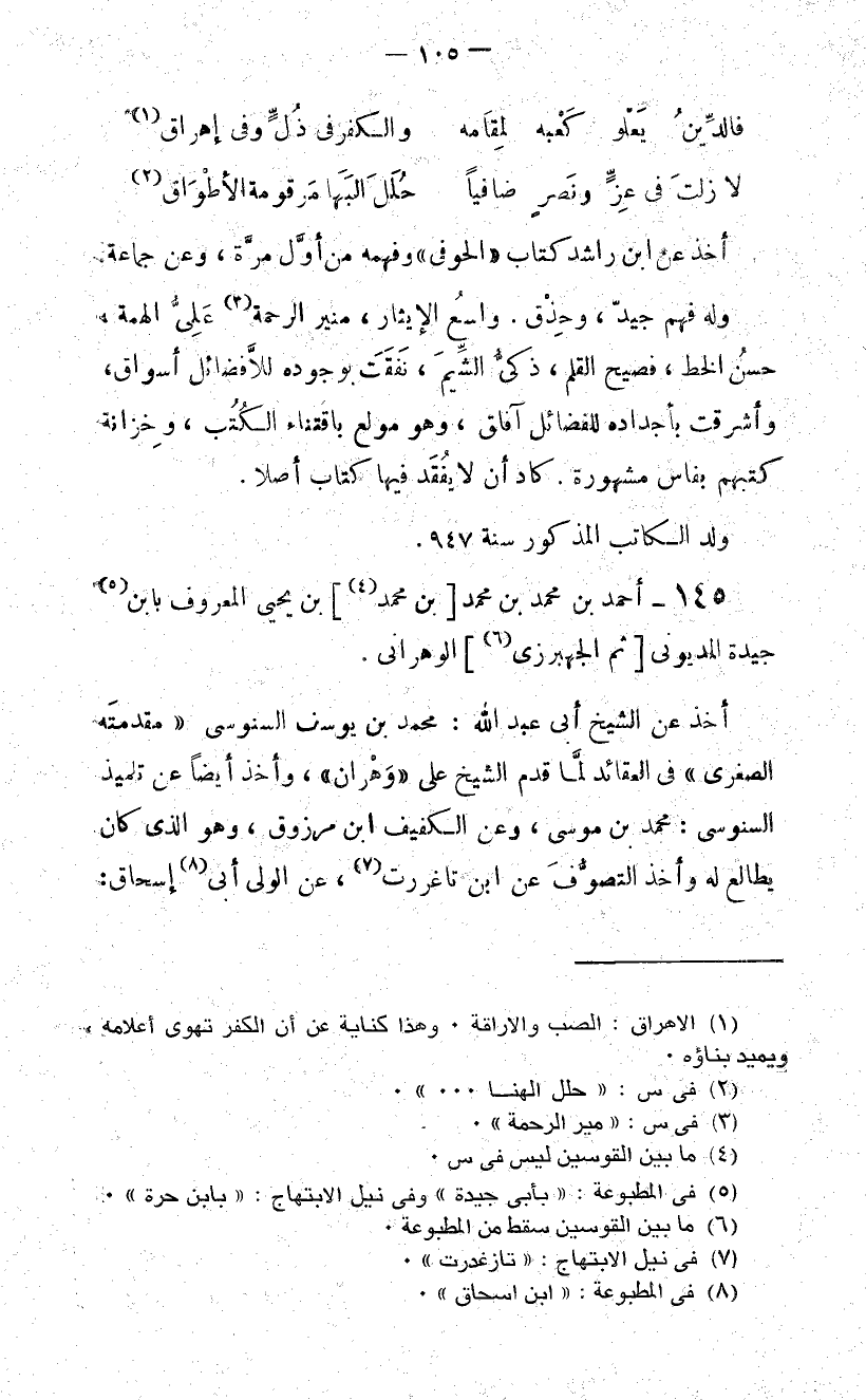 (5) فى المطبوعة: «بأبى جيدة» وفى نيل الابتهاج: «بابن حرة».