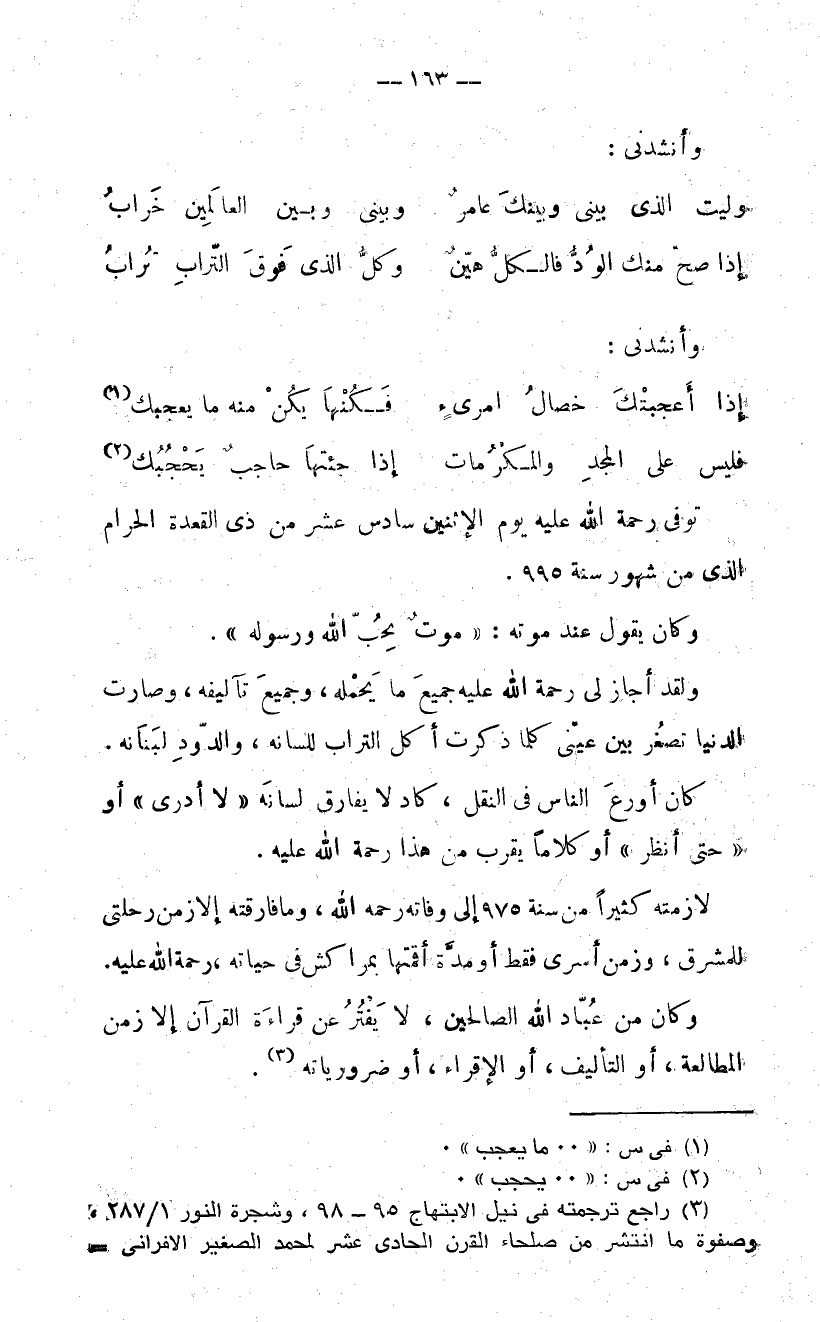 (3) راجع ترجمته فى نيل الابتهاج 95 - 98، وشجرة النور 1/ 287، وصفوة ما انتشر من صلحاء القرن الحادى عشر لمحمد الصغير الافرانى-