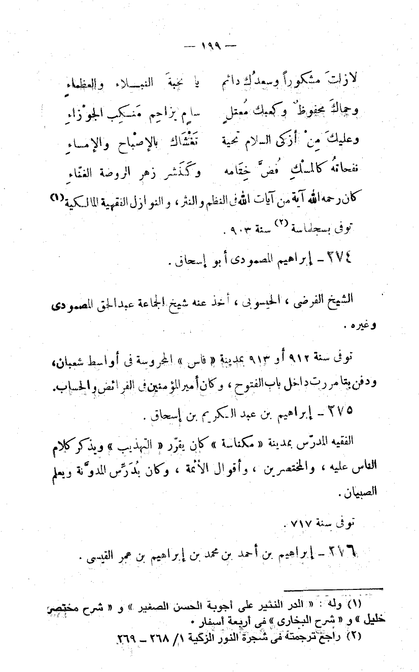 كان رحمه الله آية من آيات الله فى النظم والنثر، والنوازل الفقهية المالكية (1) توفى بسجلماسة (2) سنة 903.