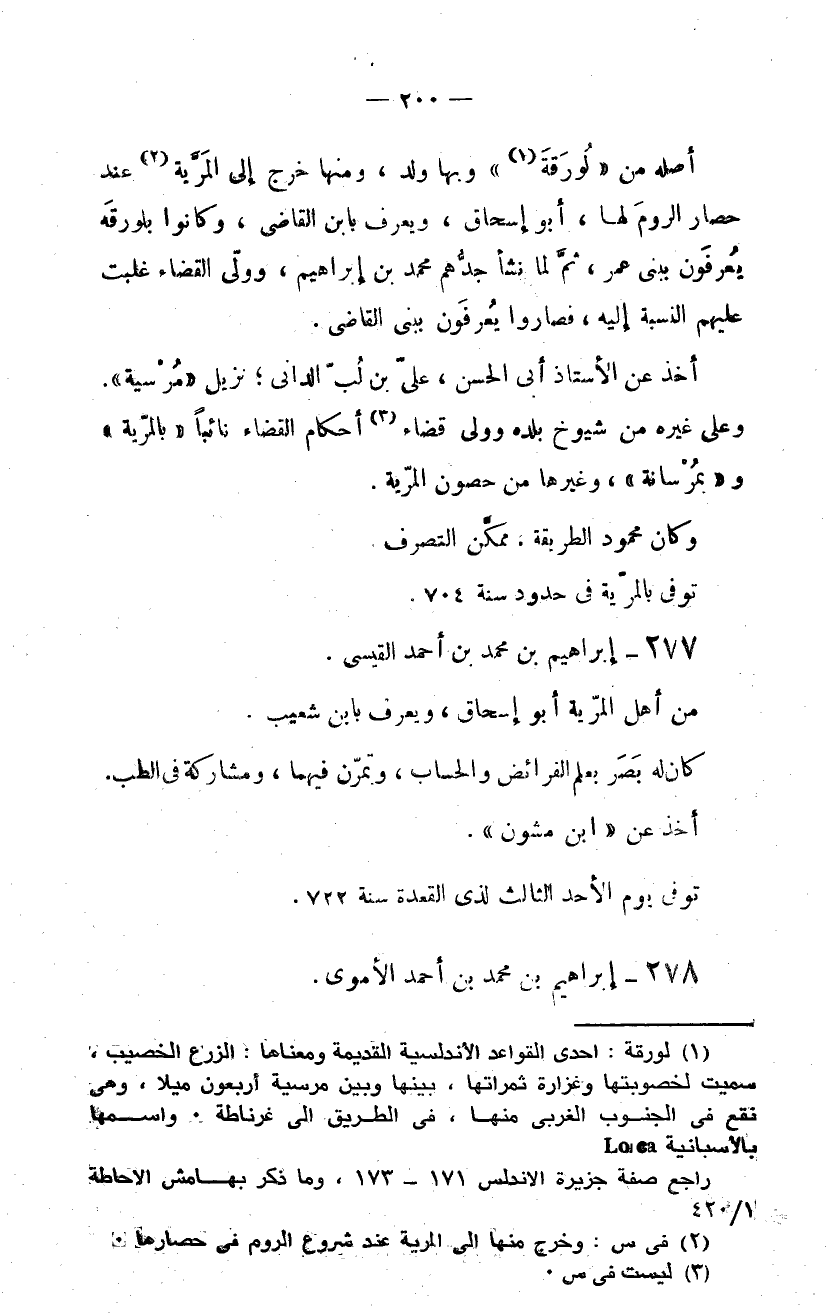 (1) لورقة: احدى القواعد الأندلسية القديمة ومعناها: الزرع الخصيب، سميت لخصوبتها وغزارة ثمراتها، بينها وبين مرسية أربعون ميلا، وهى نقع فى الجنوب الغربى منها، فى الطريق الى غرناطة. واسمها بالأسبانية aca راجع صفة جزيرة الاندلس 171 - 173، وما ذكر بهامش الاحاطة 1/ 420